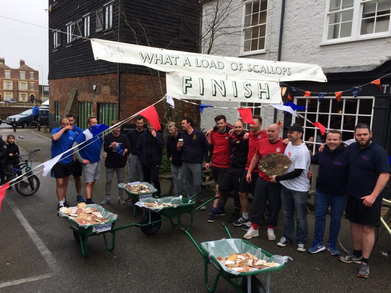 Traditionally the race runs from the fish quay on the River Rother to The Ship inn near Strand Quay with scallop shells piled high in wheelbarrows. But this year it was not to be.
