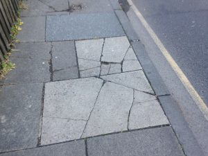 Those of us who live “on the other side of the tracks” – Valley Park in my case – are familiar with the appalling state of the pavements along Ferry Road. Many of the paving slabs are cracked in the middle and dip downward, a real hazard for all pedestrians.