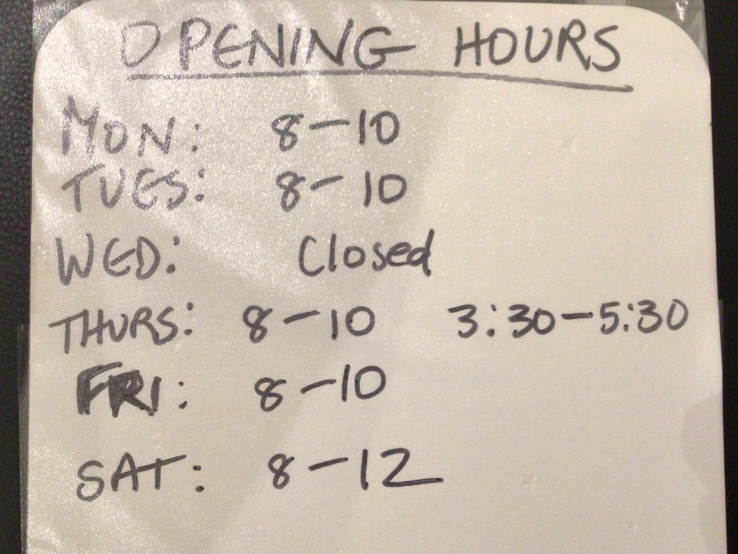 1. PS. I was not allowed to put my notice up because of…..how did you guess? …..Health and Safety, but I am pleased to report that a new notice has been put up. The good news is that it is also open on Wednesday mornings from 8:00 – 10:00. The bad news is that it is likely that the next time it rains, the opening times will, as before, disappear again.