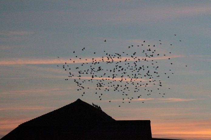 Grouping together offers safety in numbers – predators such as peregrine falcons find it hard to target one bird in the middle of a hypnotising flock of thousands.
