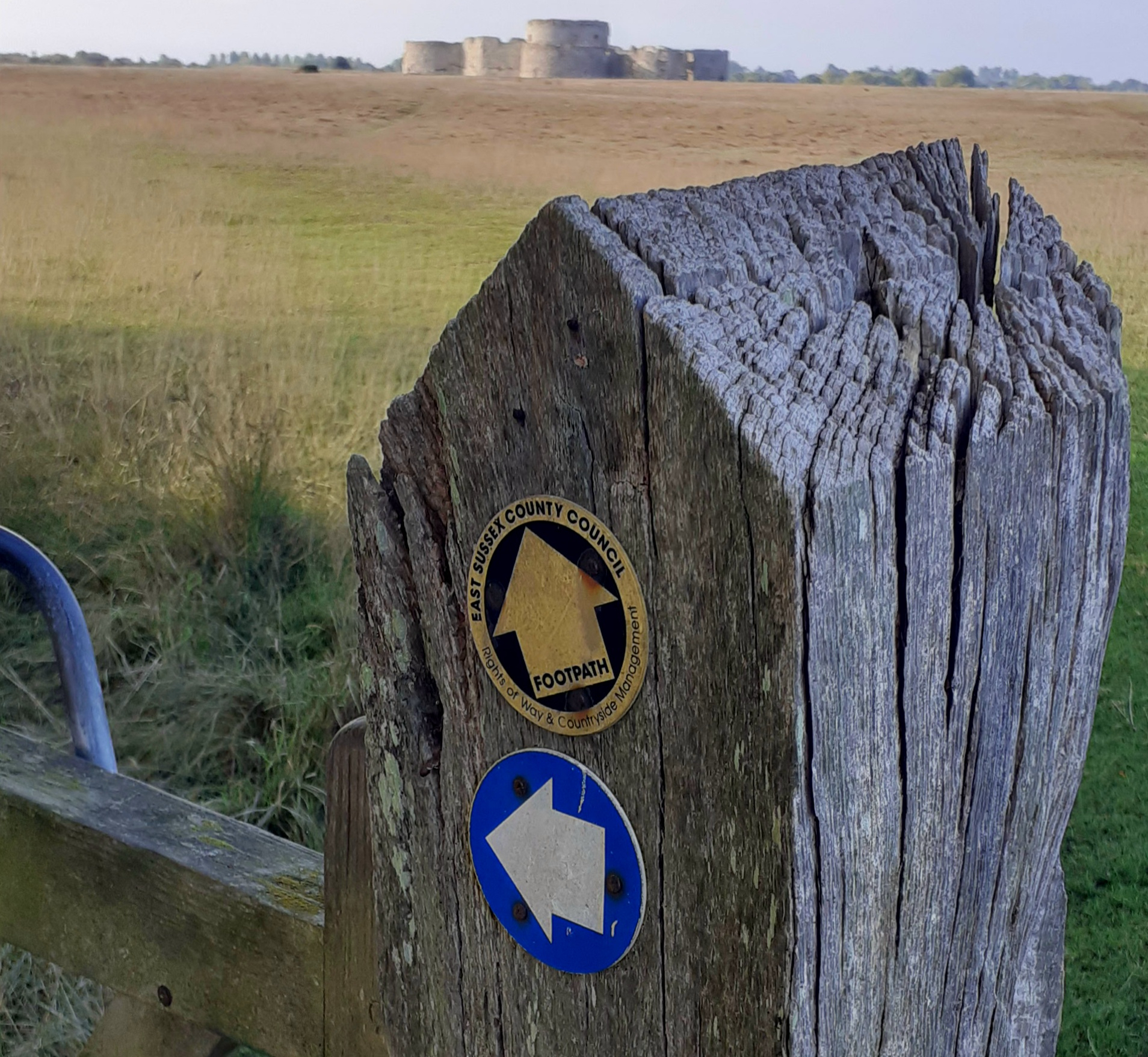 Throughout last winter there were cattle grazing right by where the footpath sign illustrated in this article is near Camber Castle. A feeding station was sited next to the concrete ruins nearby. This is right next to the bridle way where we can supposedly walk, cycle or ride horses, if it is possible. For much of the last winter the siting of that station encouraged the cattle to congregate in that area, which goes against government and NFU advice, among other bodies that say the same, to avoid siting them adjacent to rights of way. The cattle were often at the gates, which did put a lot of walkers off, the animals were young and very curious, at times they seemed to be hyper-active. The state of the bridle-path after a few months of this and regular vehicular journeys across that area left it looking rather like a film set for WW1 battle site. It was not in a fit state for any walkers who are slightly unsteady on their feet, some of the ruts were 2′ deep at least. I have photographic evidence. I’ve walked in that area regularly for years and have never seen cattle there for long periods before, or the bridle path vandalised in that way.