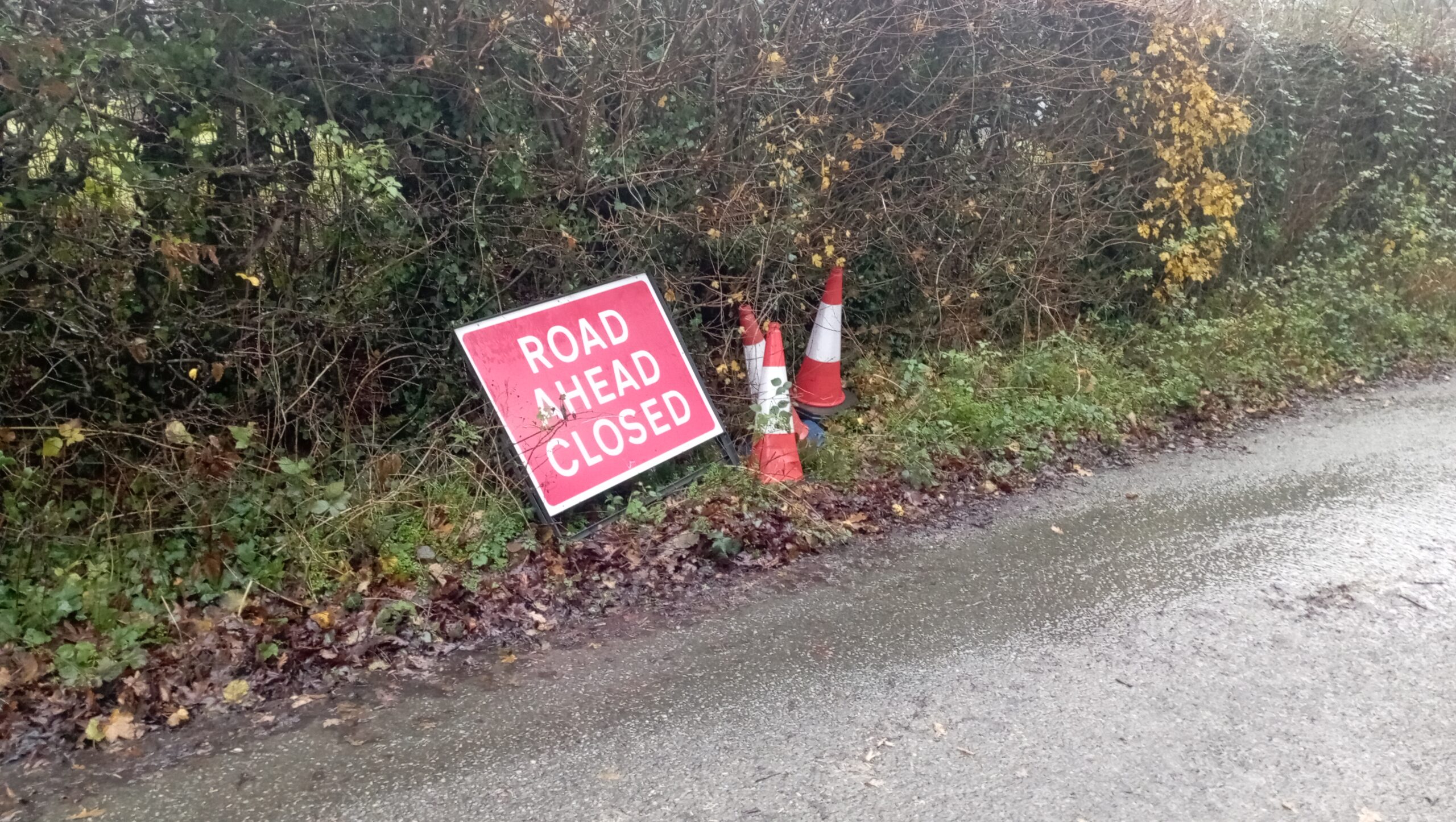 Starvecrow Lane was effectively impassable for the whole of Monday. According to the police officer on duty, UK Power Networks, BT and the Highways Agency all made a site visit but nobody seemed prepared to take responsibility. Whilst all this head scratching was going on, four police officers with two vehicles had spent hours manning a road block and were left carrying the baby until common sense prevailed. As for passing motorists, delivery drivers and anyone else who was just trying to go about their daily business, well they didn’t seem to matter, not to mention the waste of police resources.