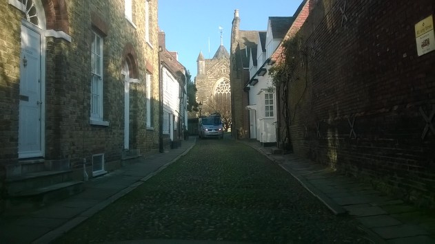 I was driving up Mermaid Street, turned right to go past Lamb House to get to Watchbell Street/Church Square and as I turned left I was blocked by a van (pictured above). It was bang in the middle of the narrow road and right on the corner, so there was no way any other car could have passed.
