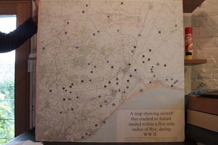 Some aspects of more recent Rye are picked up in “Mapp & Lucia” exhibits and pottery products, but “frontline Rye” (apart from those on active service) seems neglected. There is no lack of information though. We have maps of where planes were shot down (see above), where doodlebugs (V1s) landed, and where the bombs fell – and lots of valuable research and documentation.