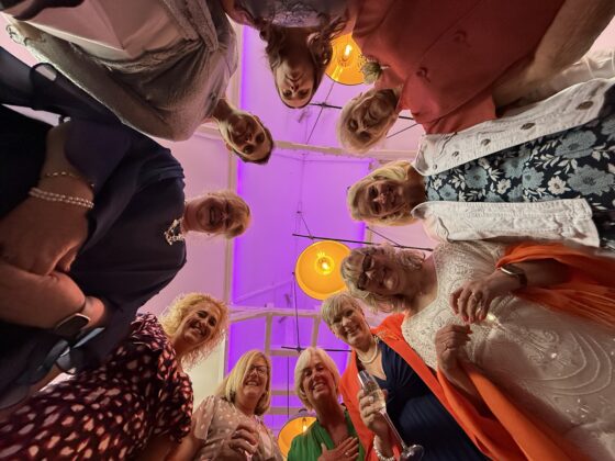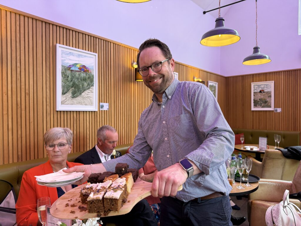 Kate’s and Pete’s party went with a swing: the food was wonderful, the Prosecco flowed and then the guests watched The Greatest Showman – it was perfect.