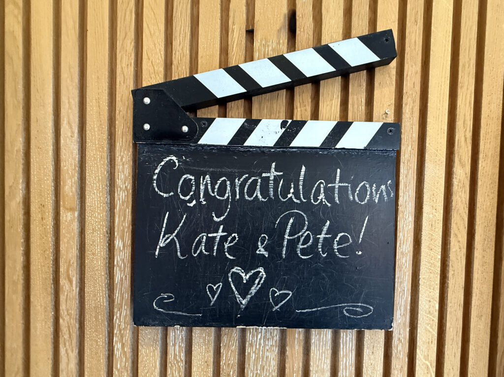 Matt explains: “It was an absolute delight to host Kate and Pete’s wedding reception at the Kino in Rye. Kate approached me a year ago as they were struggling to find a suitable venue that could cope with Daniel in his wheelchair and this place has a special place in their lives, as it was, of course, their first date. We have level access so Daniel could reach all areas with ease. The couple wanted a reception outside followed by a film because they often came to cinema together. The weather wasn’t kind but fortunately guests were able to be both inside and out. Kate’s friends had produced a short video which was Sheila’s tribute to the couple and everyone was delighted and surprised when it appeared on the screen in front of them. There wasn’t a dry eye in the house.