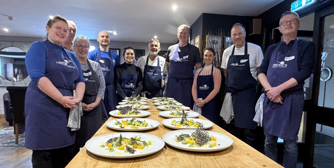The kitchen was soon filled with a steady rhythm of knives on boards, the scent of citrus being zested or the quiet hiss of a pan warming in readiness. Paul moved among the cooks with that understated confidence born of years at the stove, observant, encouraging and gently correcting a grip here or a seasoning there.