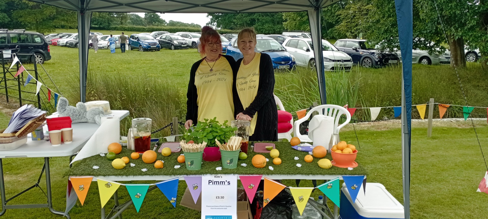 The cars just kept on coming, skillfully policed by the two young carpark attendants who did a fantastic job and there was plenty of room for everyone, entry was free with programmes available from the Pimms tent on arrival. Emma and Sue’s amazing team of helpers were dressed in bright yellow tee shirts emblazoned with the message ‘Celebrating 40 years of quality care  1984-2024’, all worked tirelessly throughout the day to make sure everyone had a good time and to ensure the day was one to remember.