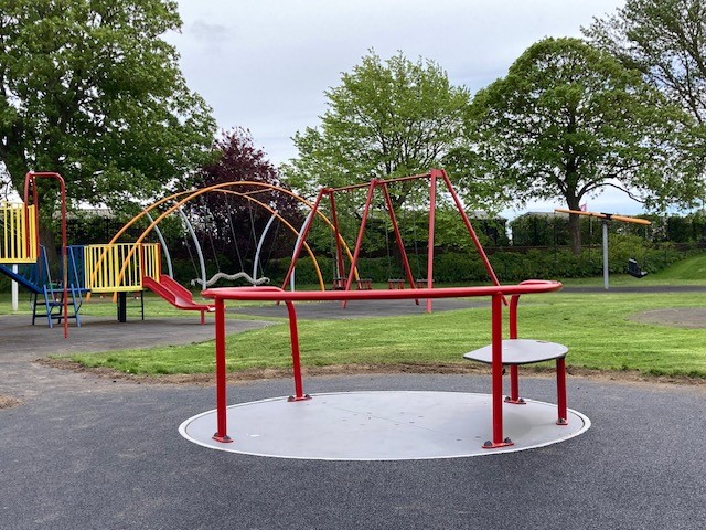 The council considered two options at the end of last year for the playground improvements. Residents were invited to vote for their preferred proposal, and the design from leading outdoor play company KOMPAN was the chosen option. Those who voted were also able to choose their preferred colour for the roundabout, and their favourite play panel. The most popular roundabout colour was red, and the top three play panels were ’Show me how to play’, ‘Driving with mirrors’, and a musical play chime panel.