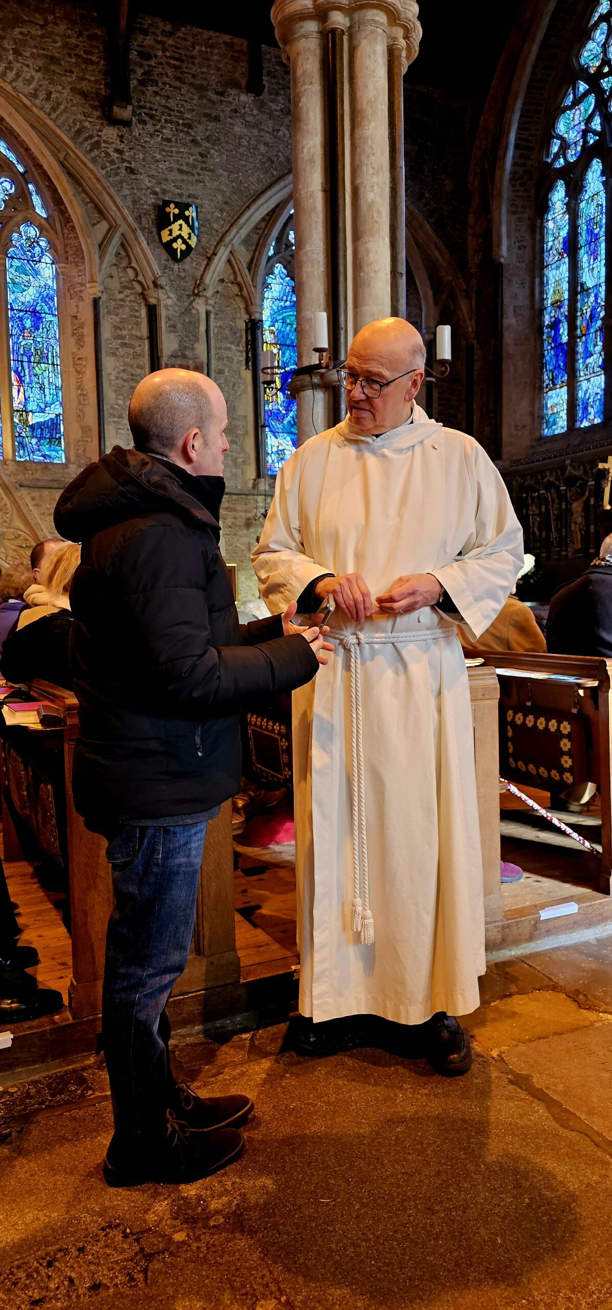 His sermon was beautifully balanced between the message of Candlemas, the story of Simeon, righteous, hopeful and patient and Jonathan’s own life and faith. He recalled his father, his mother and his theology studies and mentioned Shirley and their girls, Charlotte and Ellie. With his usual modesty, he quoted one of his friends who recognised the same childhood “slightly vague, supercilious gaze” in the man before us today. Although clearly moved, he kept his emotions in check until the final word, when their weight was suddenly laid bare.