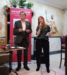 Feargal paid warm tribute to the MP Helena Dollimore, particularly on how she has worked tirelessly in the last couple of weeks to highlight the bio-beads release that has polluted Camber Sands and other beaches in Rye Bay. He highlighted her getting involved in the clean-up at Camber and organising a public meeting to call Southern Water to account.