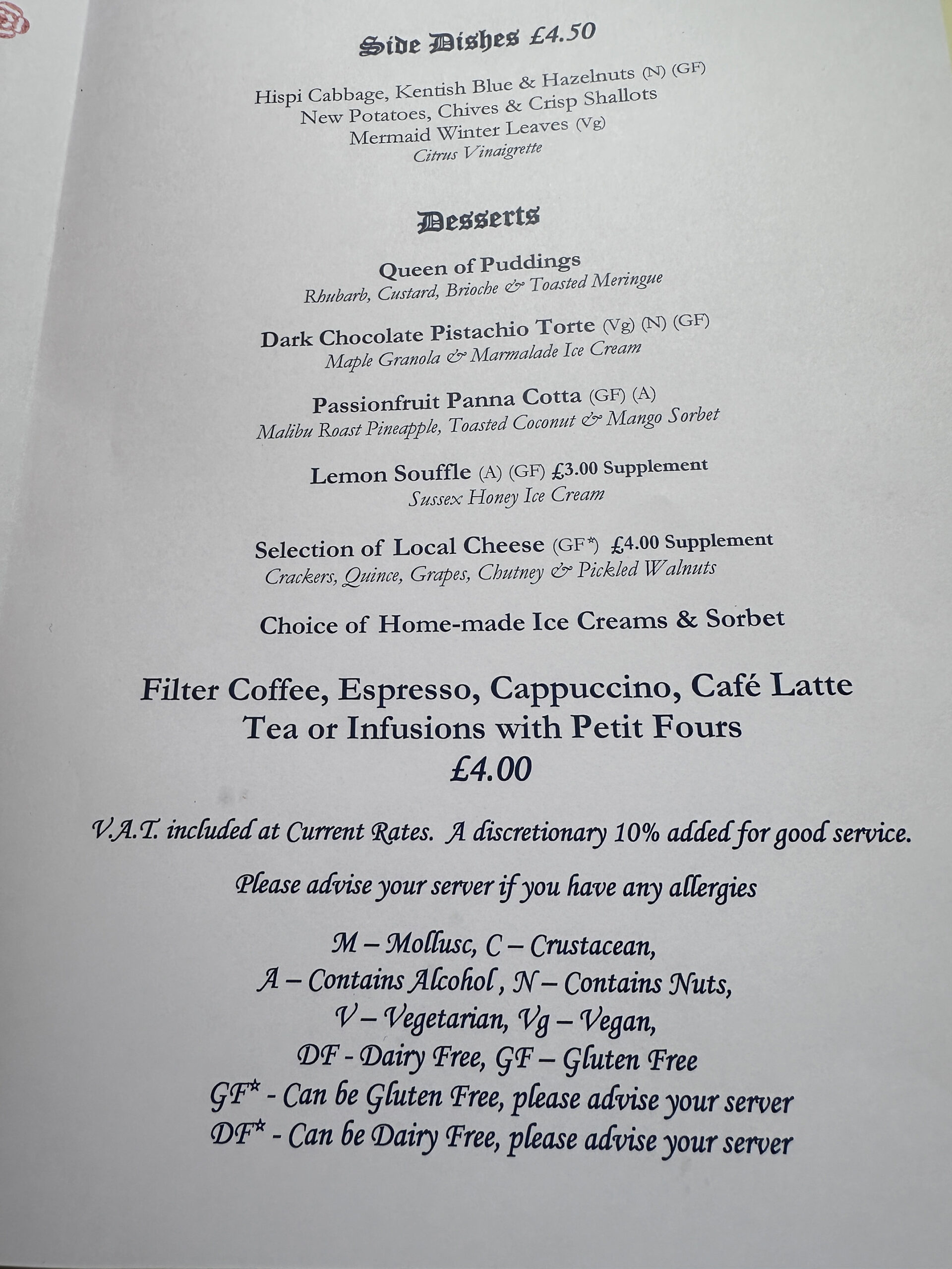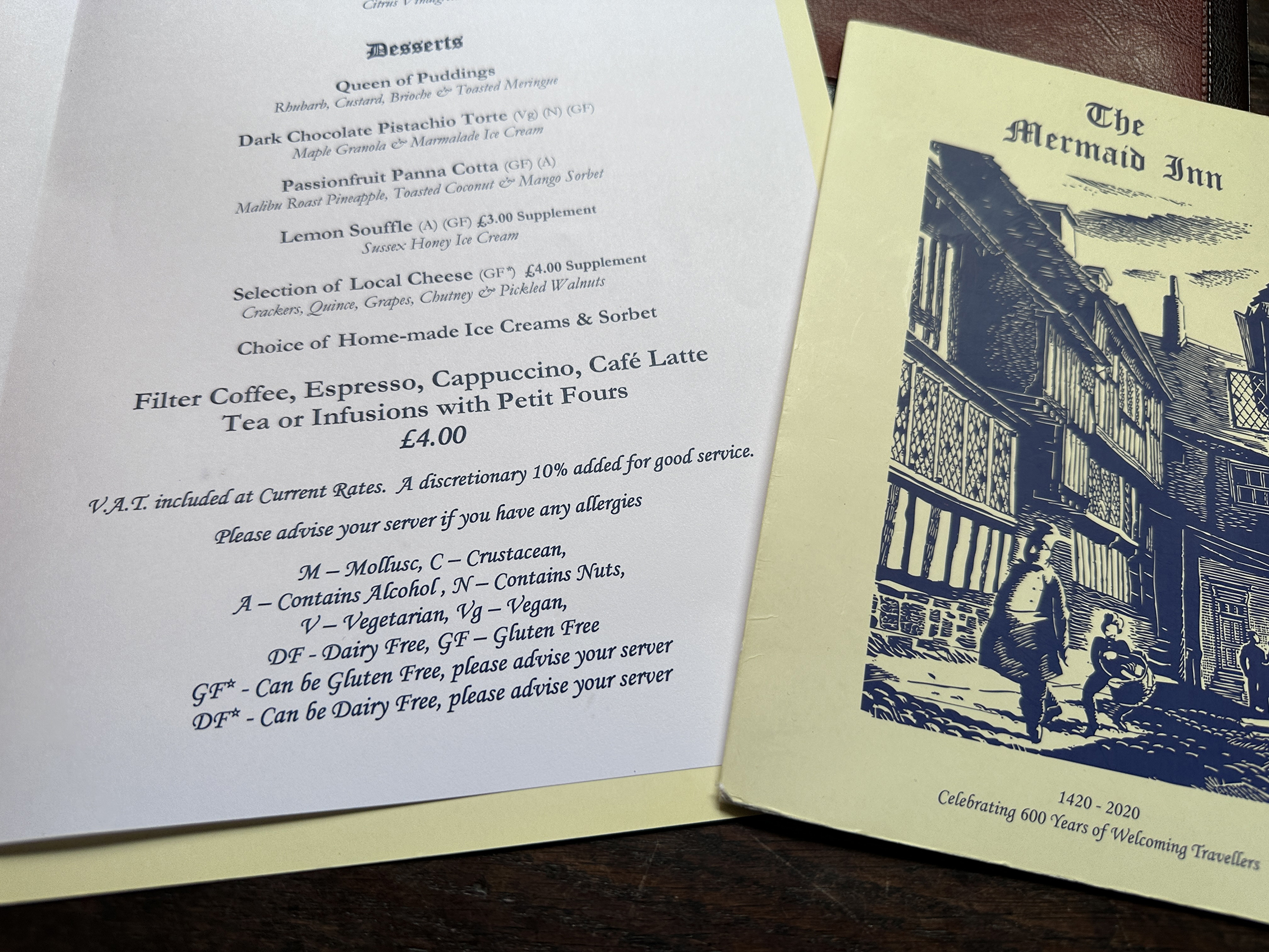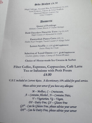 The Mermaid Inn has served me well over the years along with my food intolerances, the onion/garlic family, along with cow dairy….to name but a few.