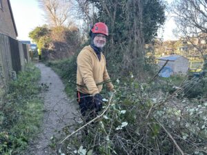 On Saturday 3 January a team from Sussex Greenways used chainsaws and cutters to remove bushes from the route, which is part of the King Charles III Coastal path.