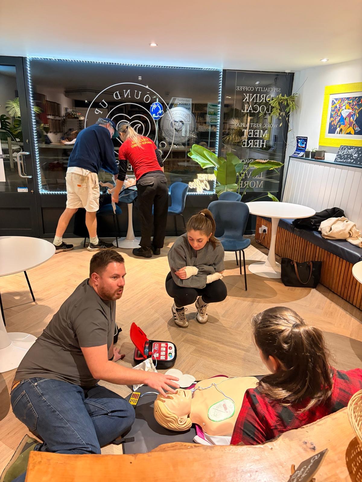 Residents in Rye have been gathering at Ground Up on Fishmarket Road on Monday evenings for an important and potentially life-saving session on defibrillator use and CPR, delivered by the dedicated volunteers of Rother Responders and The Rye Chauffeur. George Thompson has been a first aid instructor for twenty years.