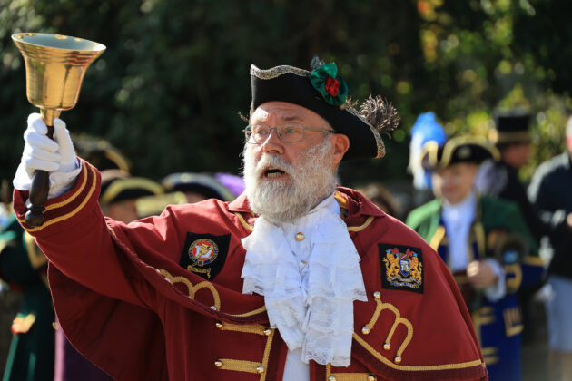 The National Town Crier Competition was held in Rye on Saturday, October 14. If you were in the town you really could not miss it: with bells and drums and bagpipes and over sixty cries of ‘Oyez!’ there was plenty of noise, bringing in the crowds to the Gun Gardens.