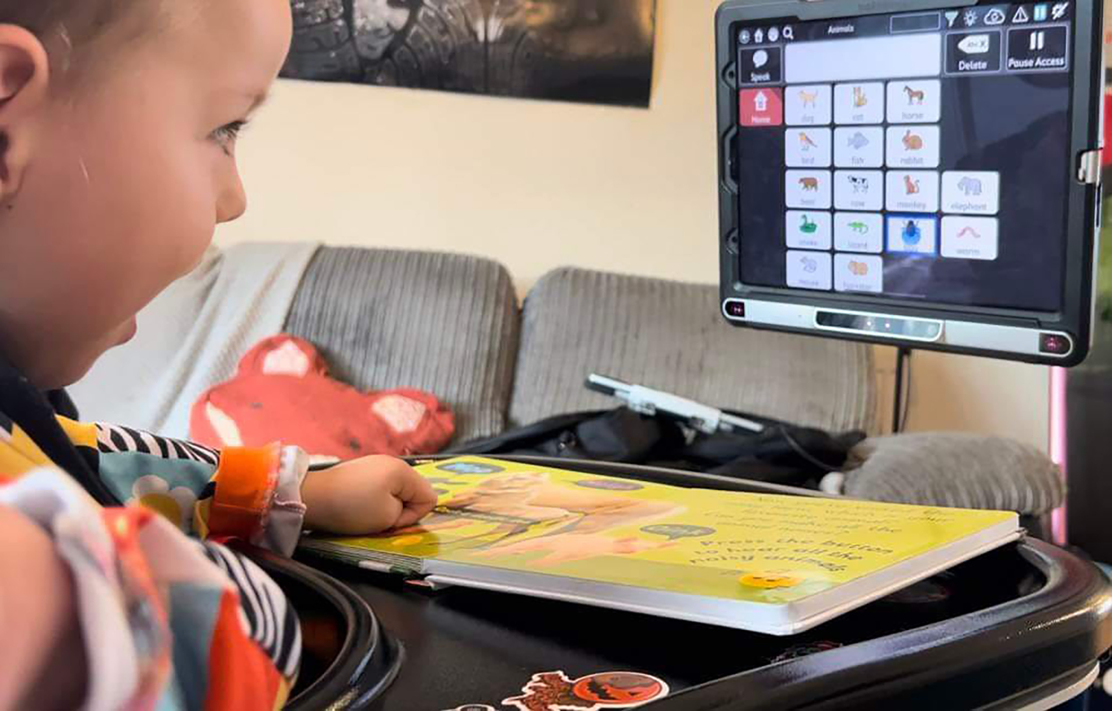 Ellie explained, “The equipment that is needed is an eye gaze device complete with speech programmes and a stand for his wheelchair, so it can be taken around with him. If Zachary had this equipment he would be able to look at words and symbols on a screen and the computer speaks them for him. In time, he will learn to put whole sentences together and really communicate his needs or join in with conversation.