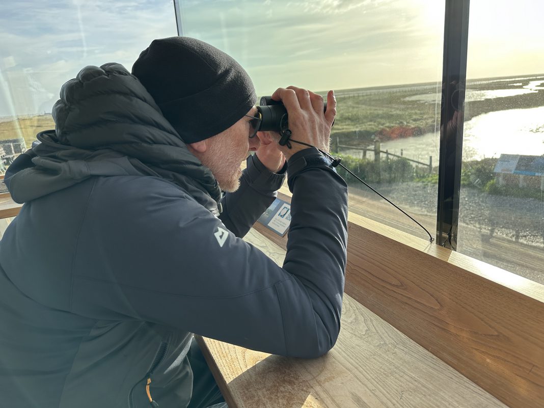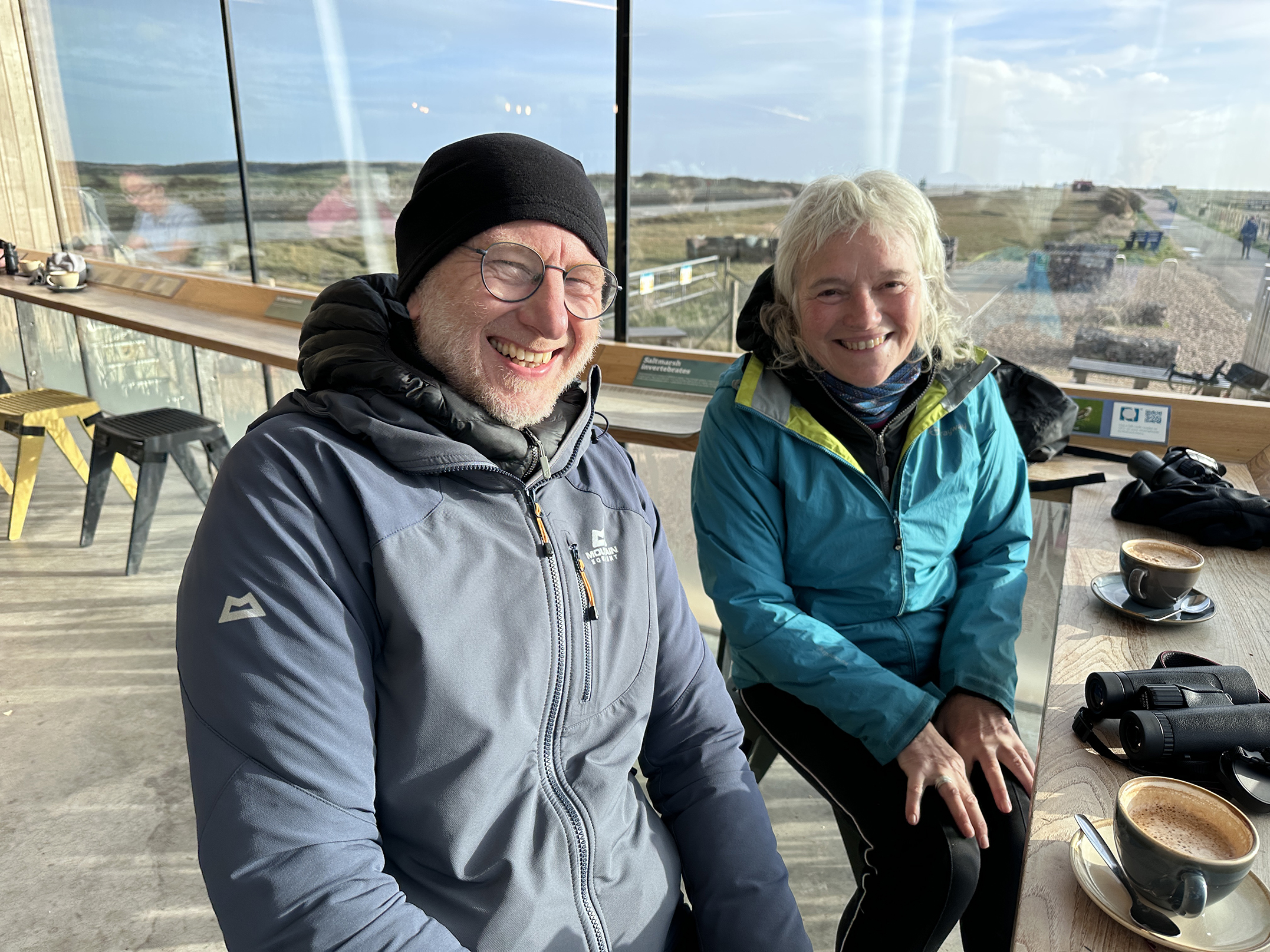 I spoke to Mike Charlton and Tina Cook, who were visiting the discovery centre from Yorkshire. As they sat drinking coffee overlooking the reserve, they were thrilled to find that there were smart new binoculars for them to use to watch the birds.