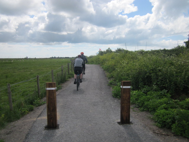 We then went on the new sea wall which is very wide; it was a quiet time in the morning, the tide was in and there were no kite surfers. We left the sea wall at Jury’s Gap and continued to the Kent border on the cycle track, which is rough and narrows down to less than half a metre. The track is very overgrown and in one place the vegetation was shoulder high on both sides. There were also clouds of flying insects (a good thing), unpleasant to ride through.