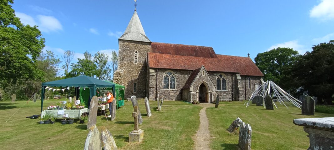 Bright blue sky and sunshine, a very good start to the day and just the right ingredients for a successful weekend at Peasmarsh Flower Festival which ran from Friday to Sunday last. The church of St Peter and St Paul is not only a spectacular building in a delightful setting but a church with a regular and sizeable congregation who share a passion for keeping it maintained and alive. What better setting for the festival and on arrival the first thing which struck me was how traditional the scene was, the church taking centre stage flanked by a plant stall, bunting and adjacent to the car park, ladies serving a superb selection of home made cakes and refreshments.
