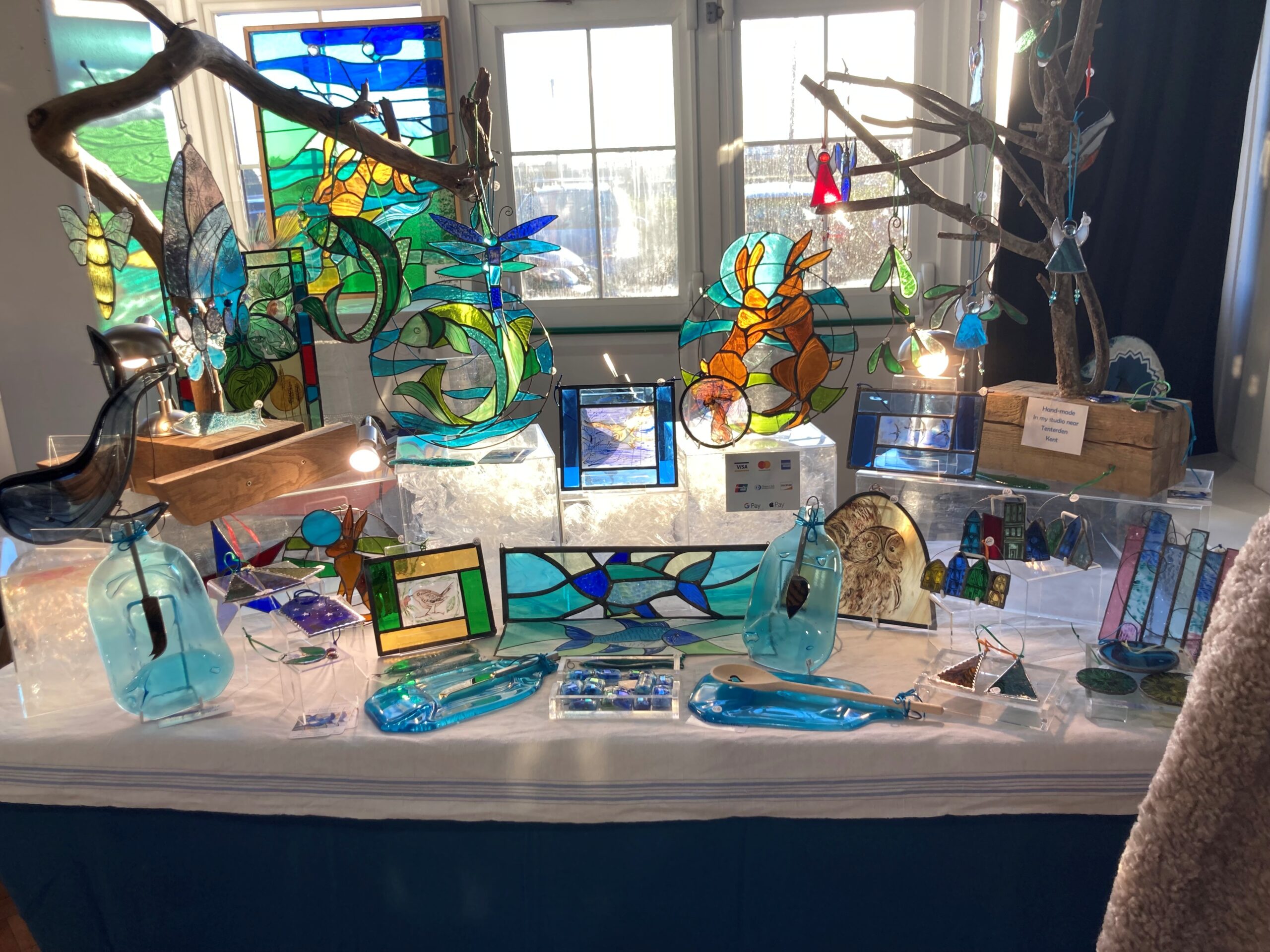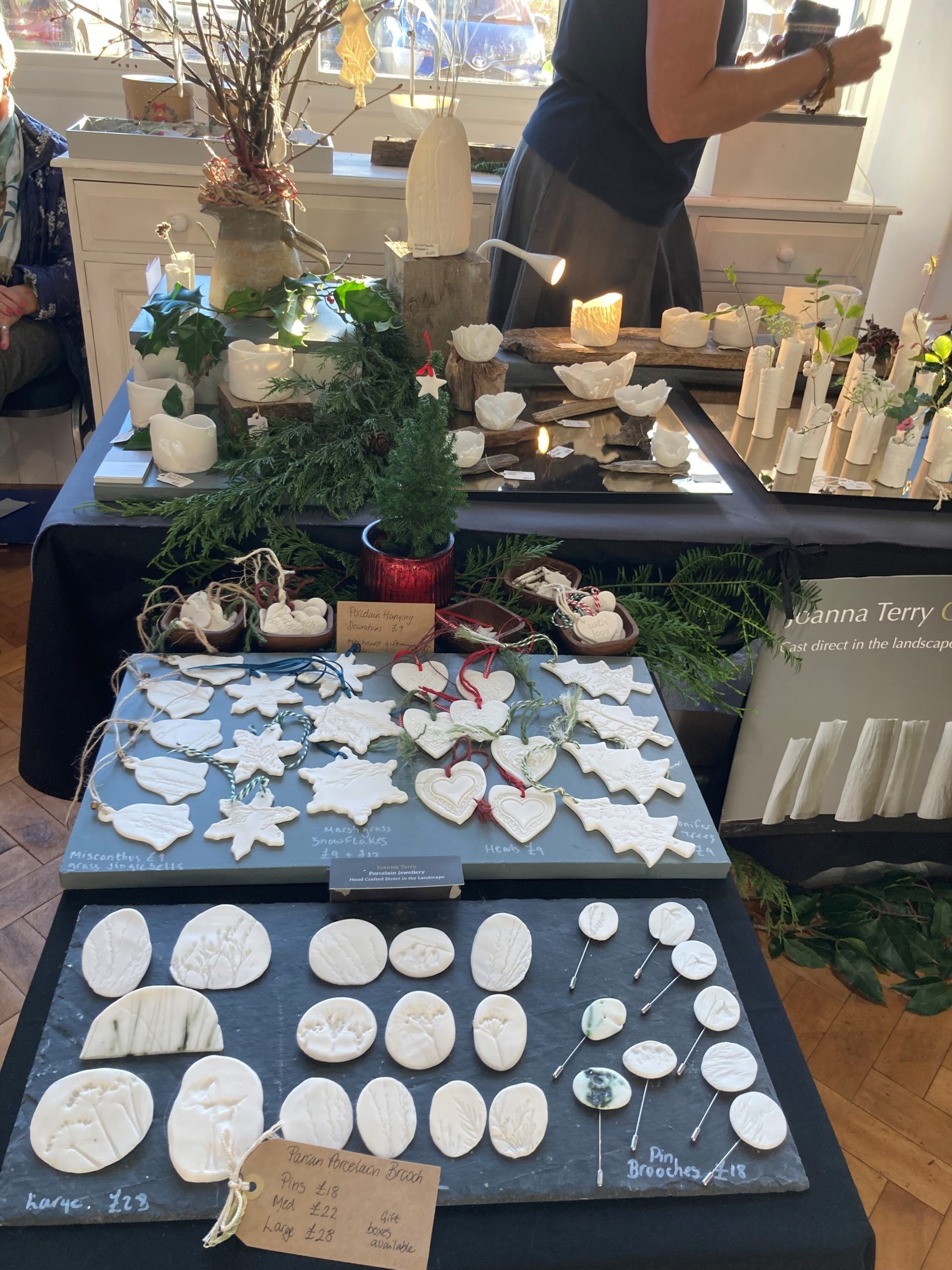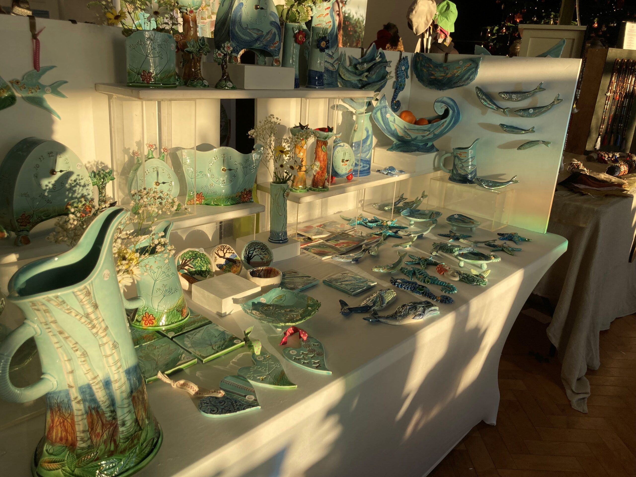 Last weekend I managed to go to three Christmas Fairs and what fun I had! There were stalls of every type and description, from ceramics, knitters, needleworkers, cabinet makers making exquisite little boxes etc., painters, printers, felt workers, jewellers, stained glass experts, jam/chutney makers, hatters, stool makers, card makers, candle makers and decorations makers. And more! Far too many to talk to individually so I’ll let the following photos do the talking.