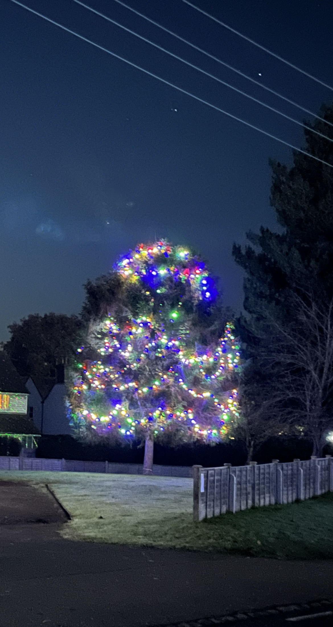 “Around the same time as the lights, a village community tree was put up in Mr and Mrs Tomsett’s garden. This happened each year until a permanent tree was planted in the corner of their front garden for all to see: this is now just a little bit bigger.