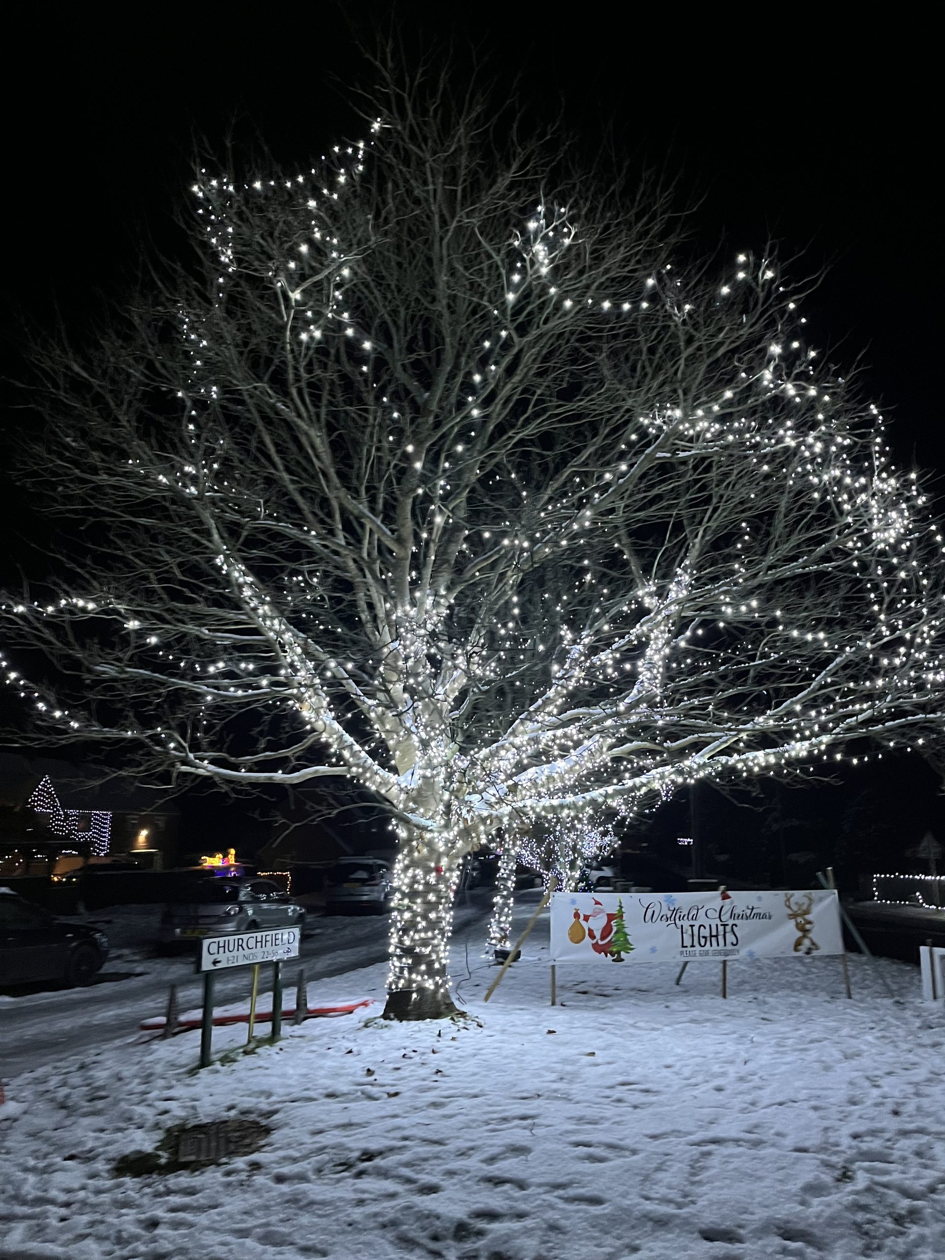 “Westfield Christmas Lights was started back in December 1975 when Mr and Mrs Munday and Mr and Mrs Tomsett put some lights up on their houses. This was then followed by a few neighbours and over the years this has grown and grown into a fantastic display of lights in the whole village.