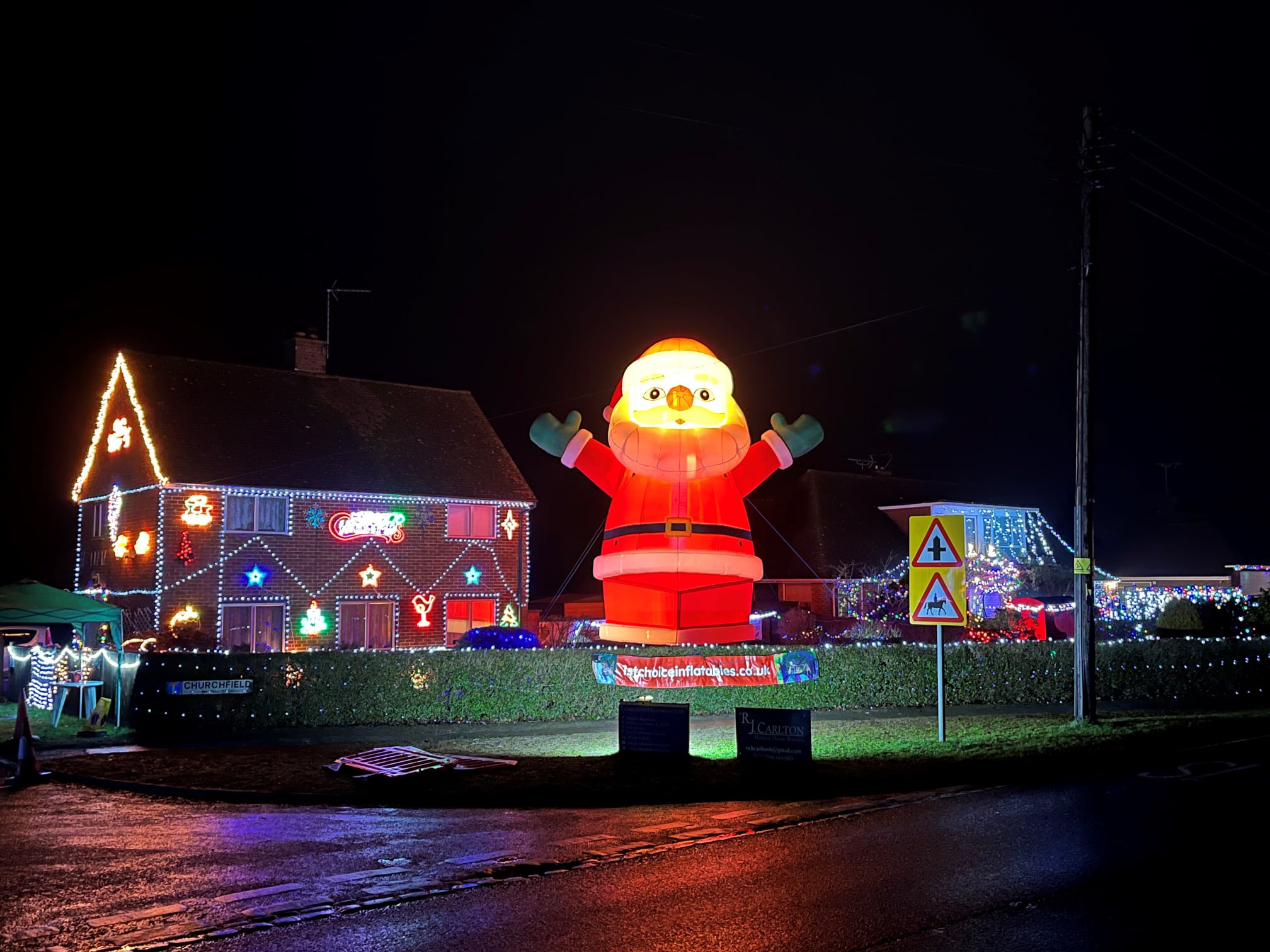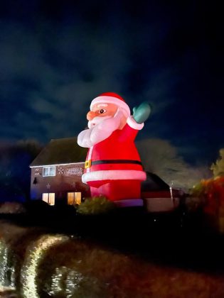 “We have been supported by 1st choice inflatables (we cannot thank them enough for their support of this venture) for the last two years who kindly help us out with the giant Father Christmas and the Snowman that is in Ken Munday’s garden and proves to be a major focal point that the children love.