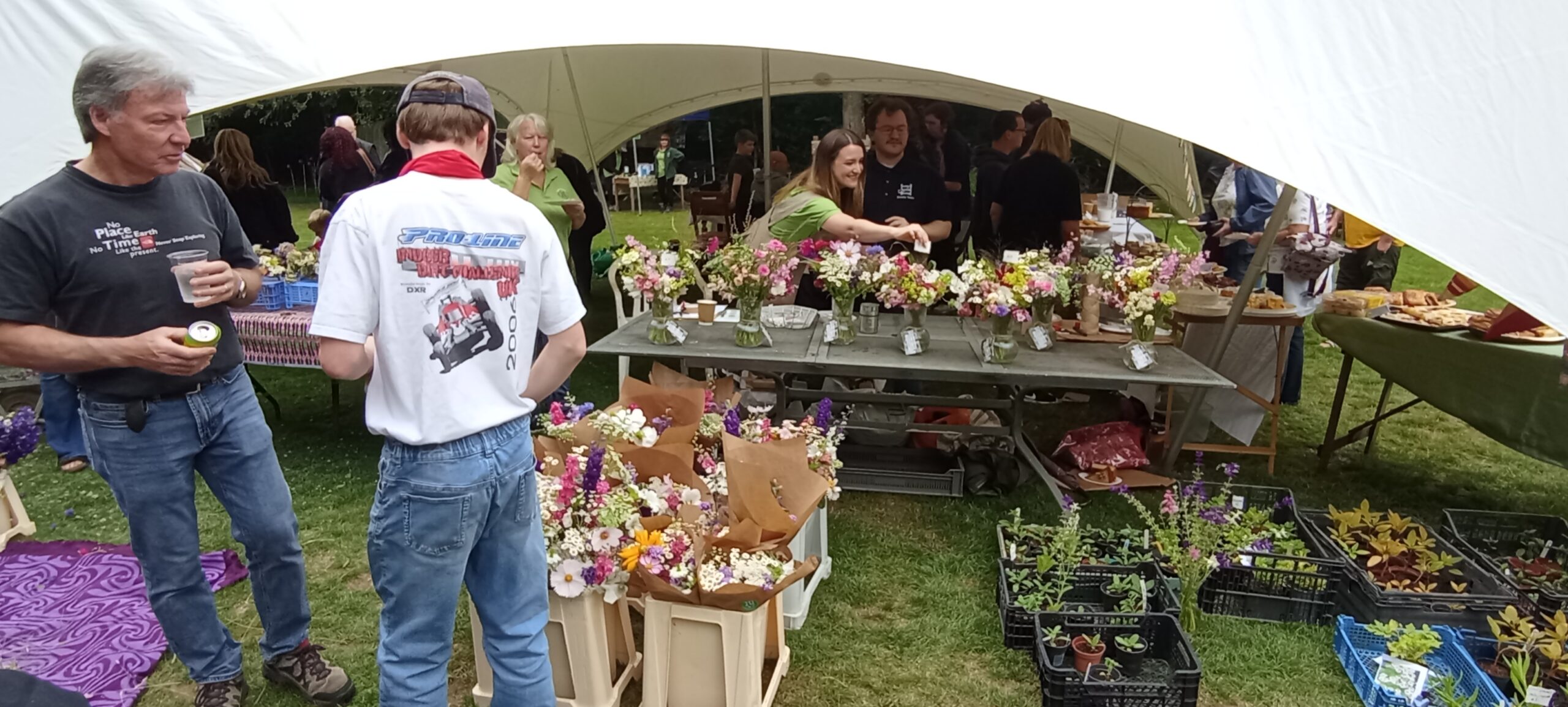We were entertained throughout the day with live music from The Kukes, Scott Chisolm, Hayley Savage and Logan Wilson whilst we enjoyed all the market stalls selling a variety of crafts. No country fair would be complete without a barbecue but this one was fuelled with charcoal made by the trainees using wood from the farm, the food was delicious and the queue kept lengthening. If you fancied something different, under the open fronted marquee next to the flower stall was a huge variety of pastries, cakes, savouries and refreshments catering for all tastes and preferences and the bar was doing a fine trade in beers and soft drinks.