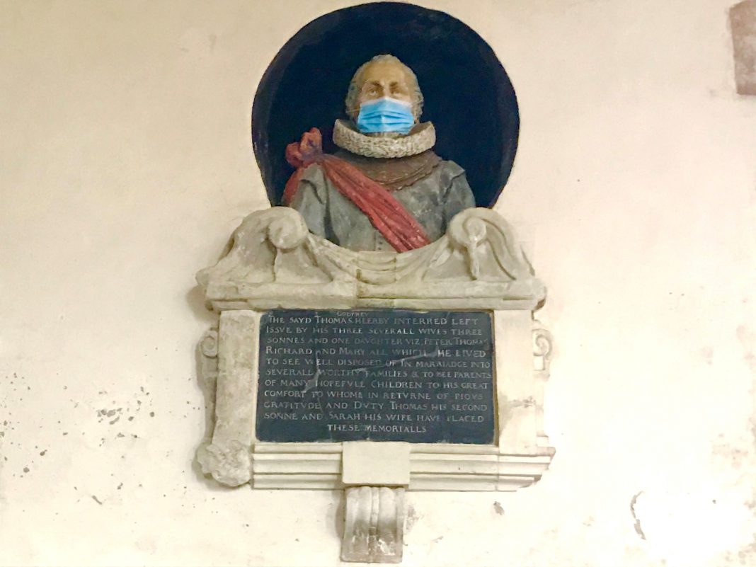 So here’s the challenge, above is an example of an interesting photograph, taken this week inside All Saints Church in Lydd and while I appreciate some readers may find the subject matter a little irreverent it is still quite a poignant image, which is of the time. Face masks have after all become very much part of our everyday lives (at least for now) and someone (and I assume the church hasn’t objected) has decided to reinforce the safety message by dressing this figure appropriately.