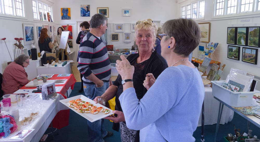 On the Saturday afternoon, three of the artists were exhibiting their skills, and the others were more than happy to discuss and explain their work, with a variety of prices and styles of work for sale, from Linda Davison’s lovely cards to much larger works from Michelle O’Neill. Linda also displayed large screen prints and spent considerable time talking about the processes of glass fusion that she uses. Joanne Weaver was working on a painting of her grandson and is also a tutor and has information on her classes as does Fran Russell, who works in oils in “plein air”.  K Philip Harrison takes very beautiful digital images, capturing a dramatic moment, with wonderful colour and movement. Potter Cathy Dalton is inspired by her garden.