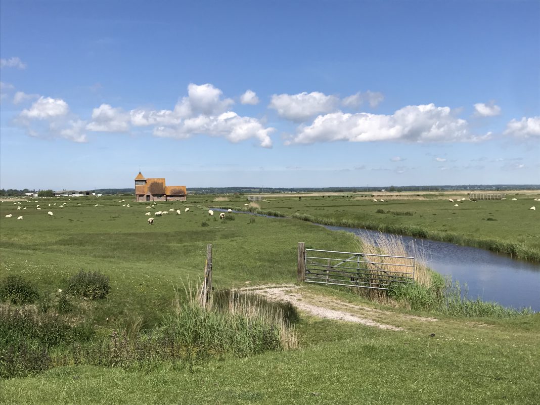 St Thomas Becket church in Fairfield on the Romney Marsh stands alone in fields surrounded only by watercourses and sheep. Around 1200 AD, a simple timber and lath construction was built as a temporary place of worship for local farmers, but temporary became permanent and the building survived until the 18th century.