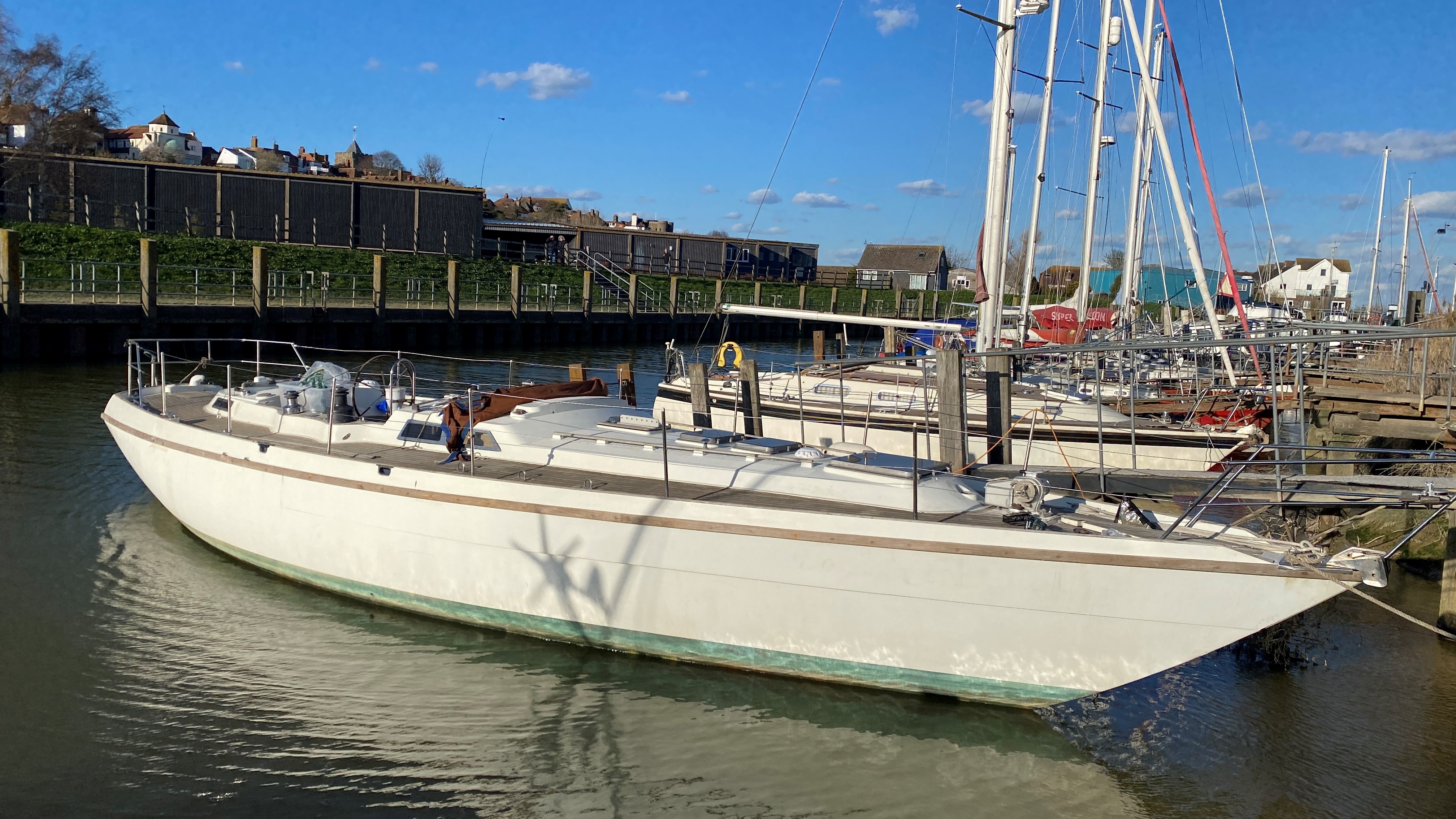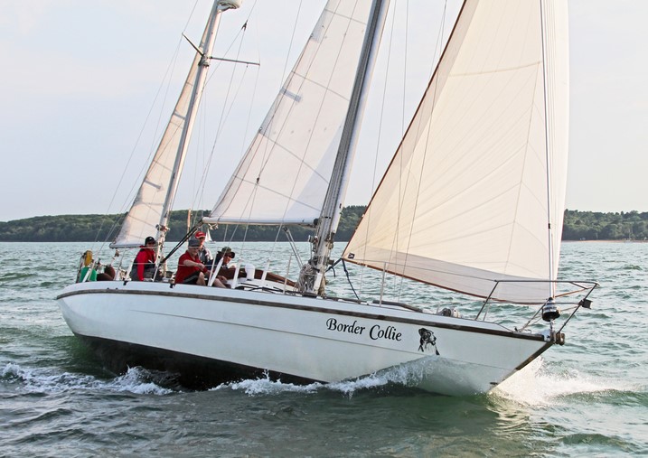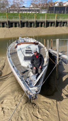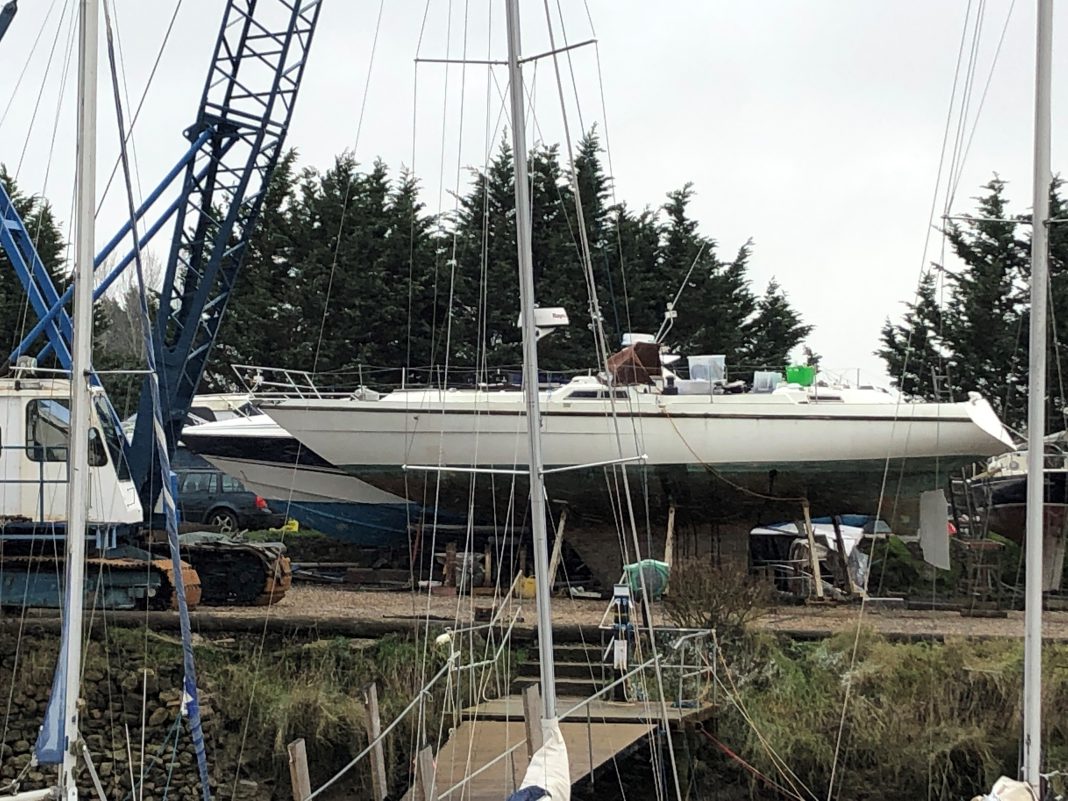Not long after, she and David were on Southampton Water, looking for a boat to buy at a reasonable price. From a water taxi, they saw the yacht named Border Collie, trot-moored fore and aft on the River Hamble. Built to a design by Laurent Giles, the world famous firm of naval architects, it was a case of love at first sight. Its condition, virtually unchanged since first built in 1976, was for them no drawback, but a challenge.