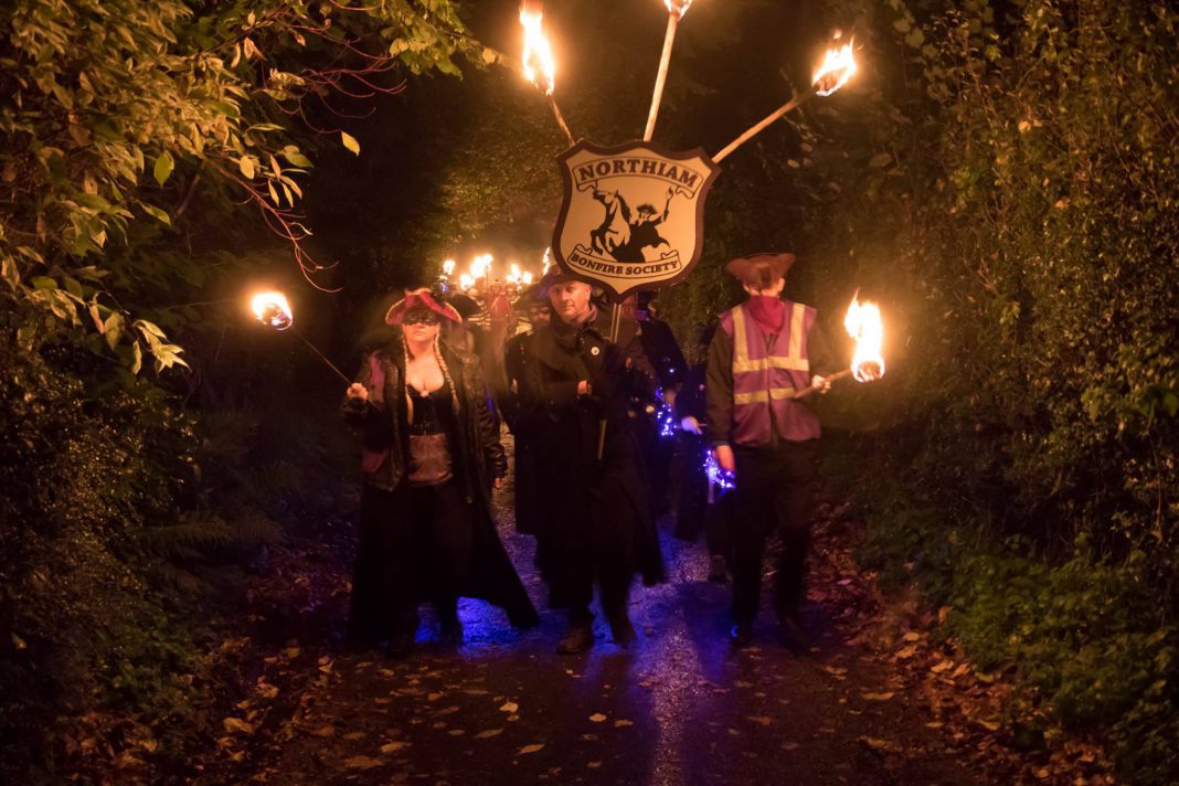 After a day when Storm Brian claimed the main gazebo, helpers were regularly soaked with torrential rain, and every vehicle had to be helped onto the field with a tow from a tractor, Northiam Bonfire Society took the courageous decision to still hold their 5th Anniversary Bonfire Procession last Saturday, October 21.