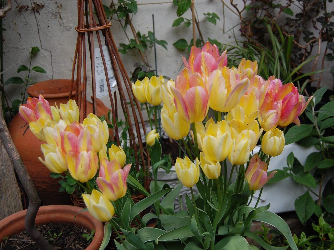 The main photo shows tulips with one, two three, four or even five heads of bloom per stalk, bought as bulbs at the Rye market last year. Tulips have been wonderful this year.