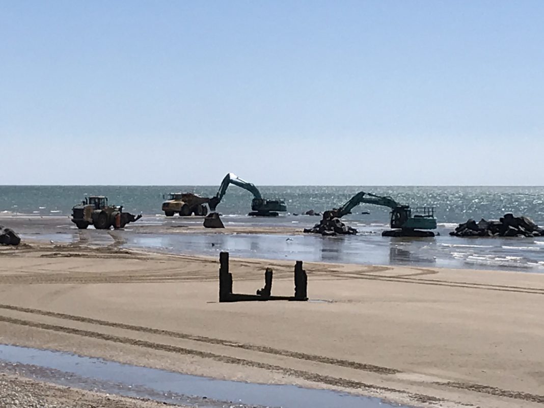When complete, the scheme will provide improved protection from the risk of flooding for 1,831 properties, 825 of which are residential. With the absence of tourists at this end of the beach it’s a great opportunity to crack on with the works but, as lockdown begins to ease, visitors and onlookers may change the situation.