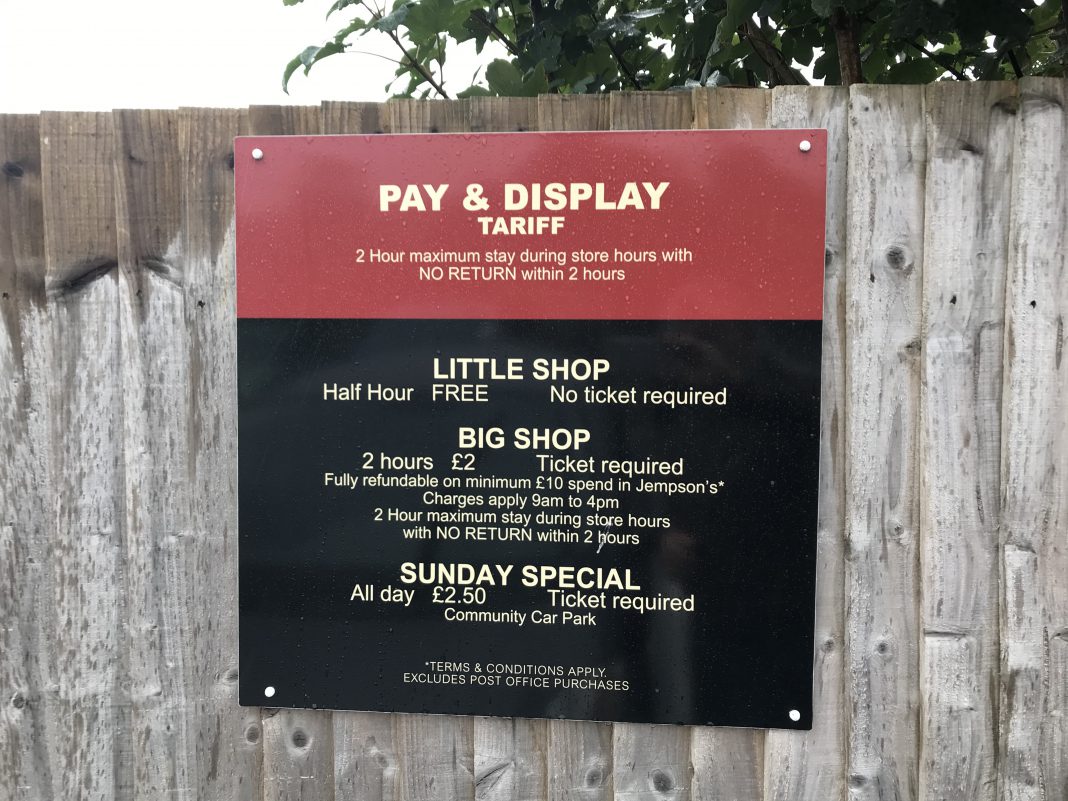 I’ve never really noticed or bothered to read the car parking pay and display signs at Jempson’s in Rye until today but, when I did, I was pleasantly surprised.