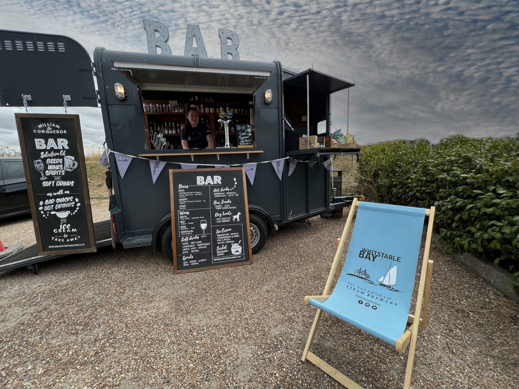 An eye-catching pop-up bar has appeared in Rye Harbour in front of The William the Conqueror pub to serve drinks, coffees and ice-creams. It is shiny and gleams in the sun and entices the passer-by to stop and take time out from a busy schedule.