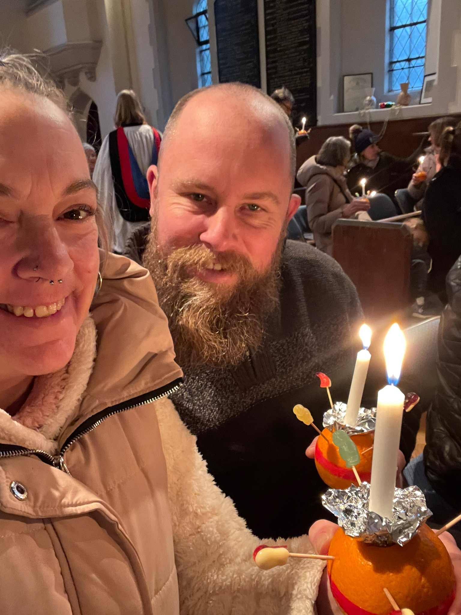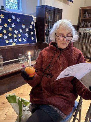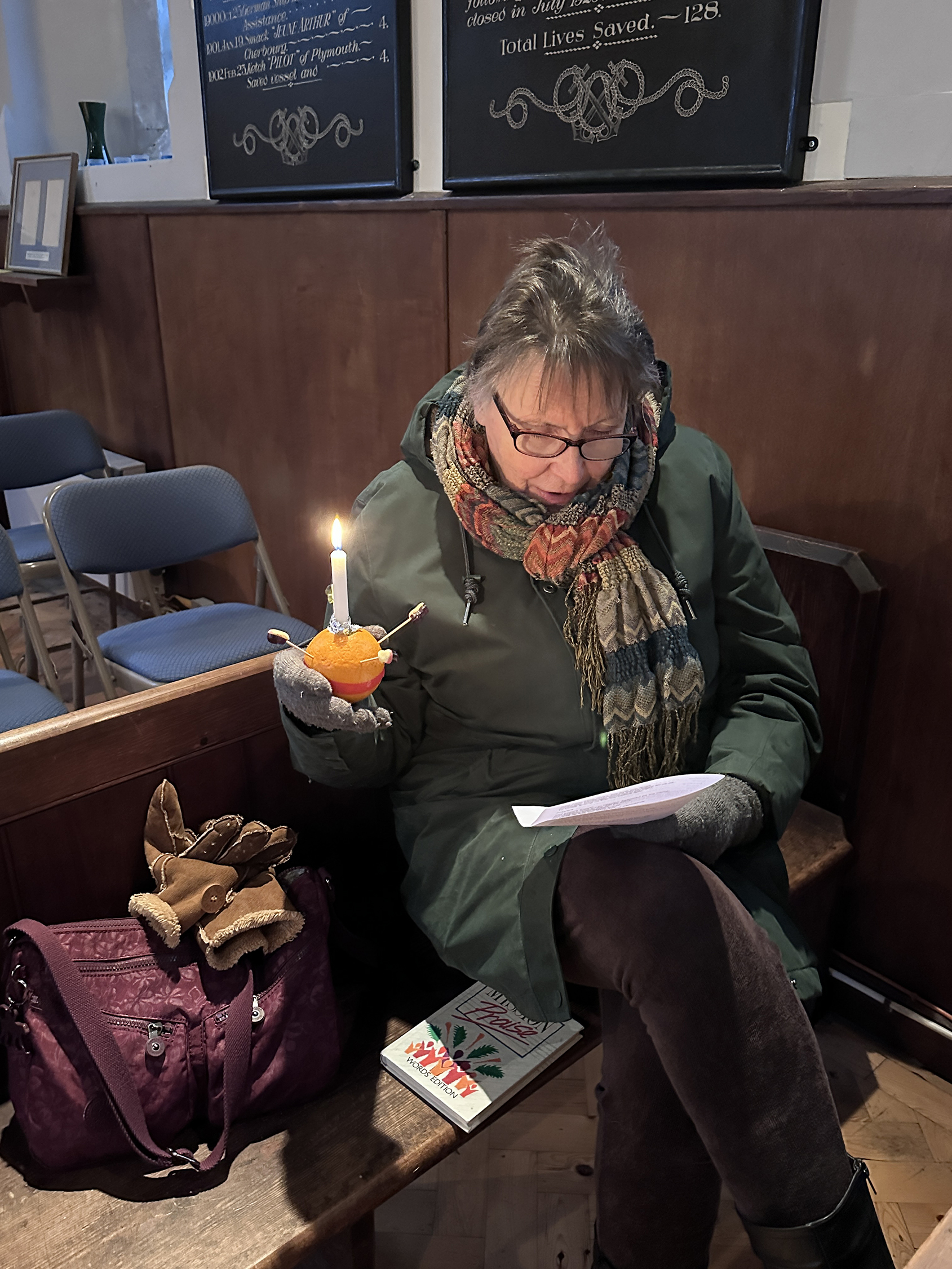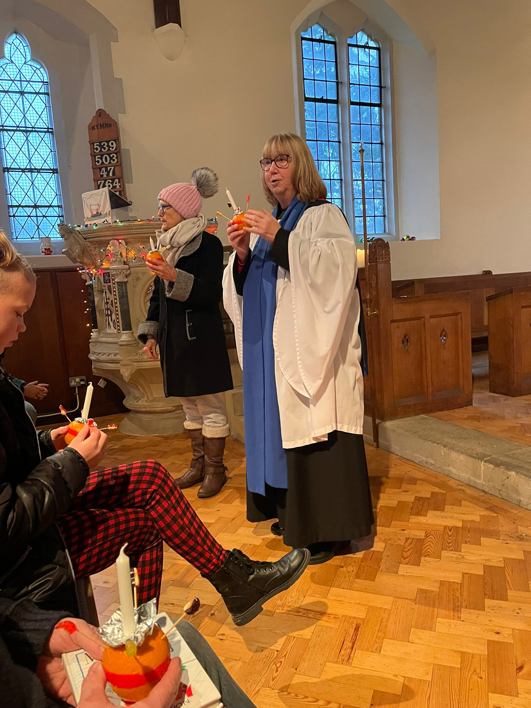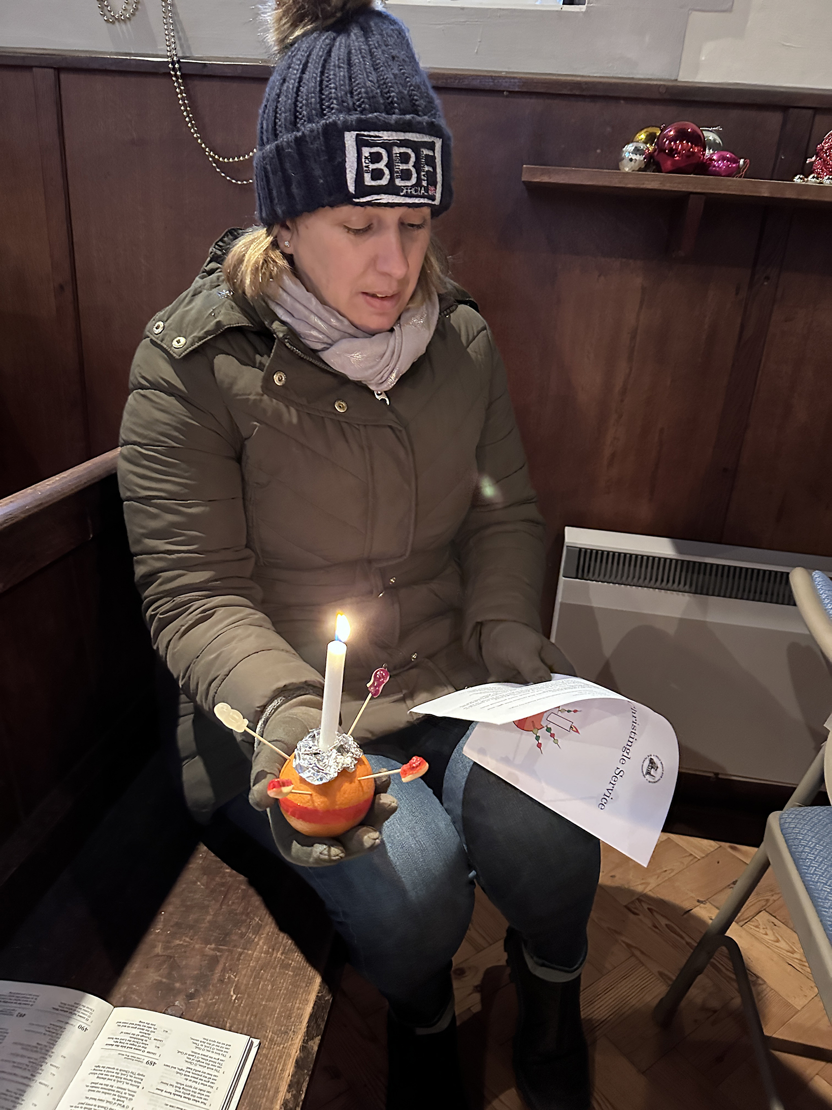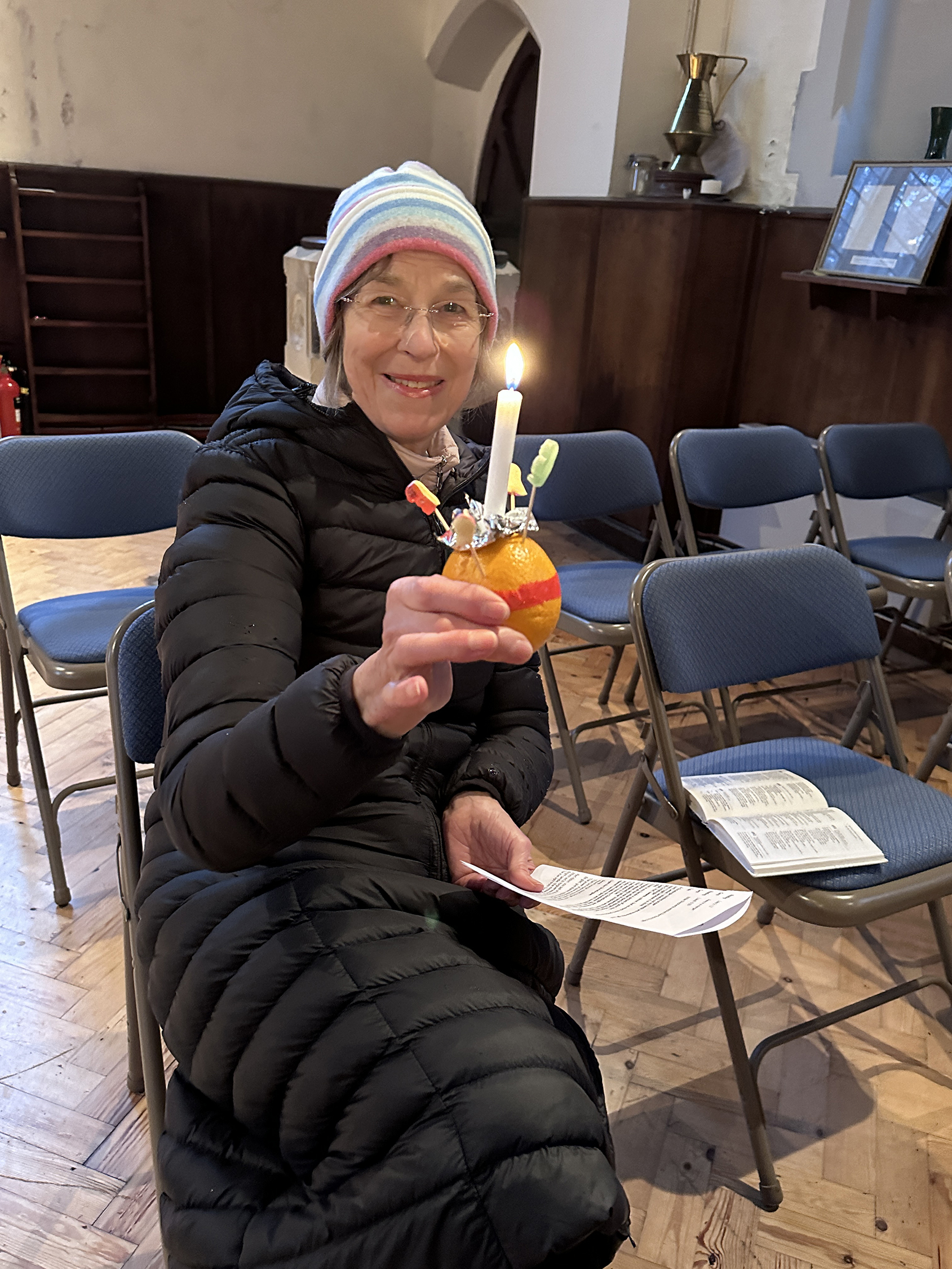 Linda explained the different components of the Christingle as the congregation made them in the service. It was lovely to see so many youngsters there enjoying the service. Or was it the lure of the sweets on the orange perhaps.