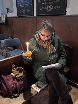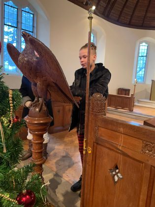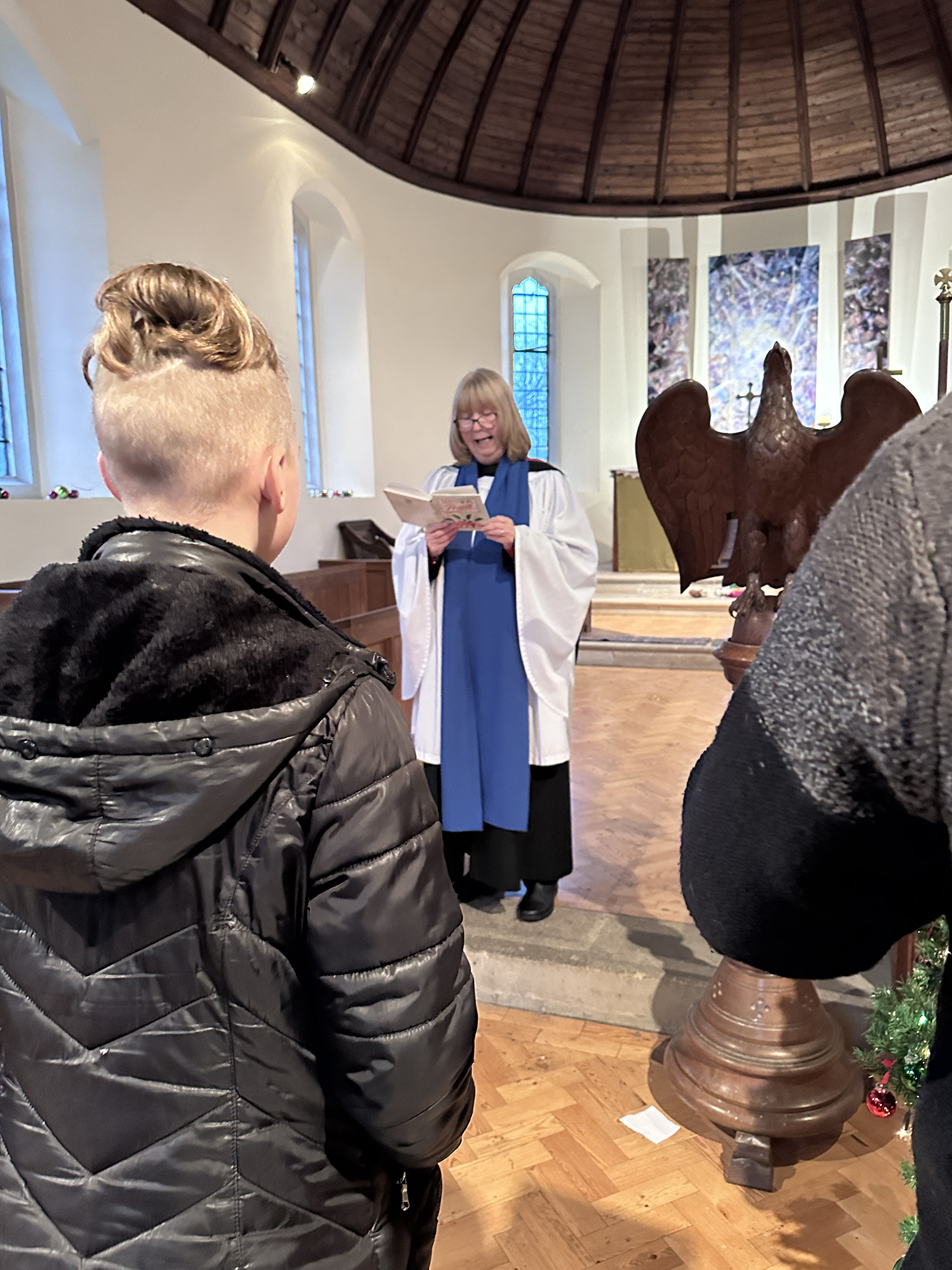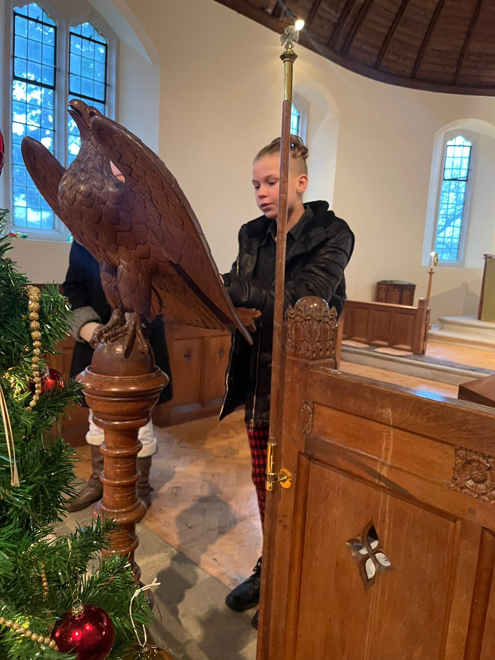Skye Leroy-Lewis, aged 12, read two lessons which is pretty brave in front of the congregation. Toby, her brother, was a great help with decorating the tree and the church with Skye, and Linda Esrada led the service beautifully. Martin Bruce played the organ.