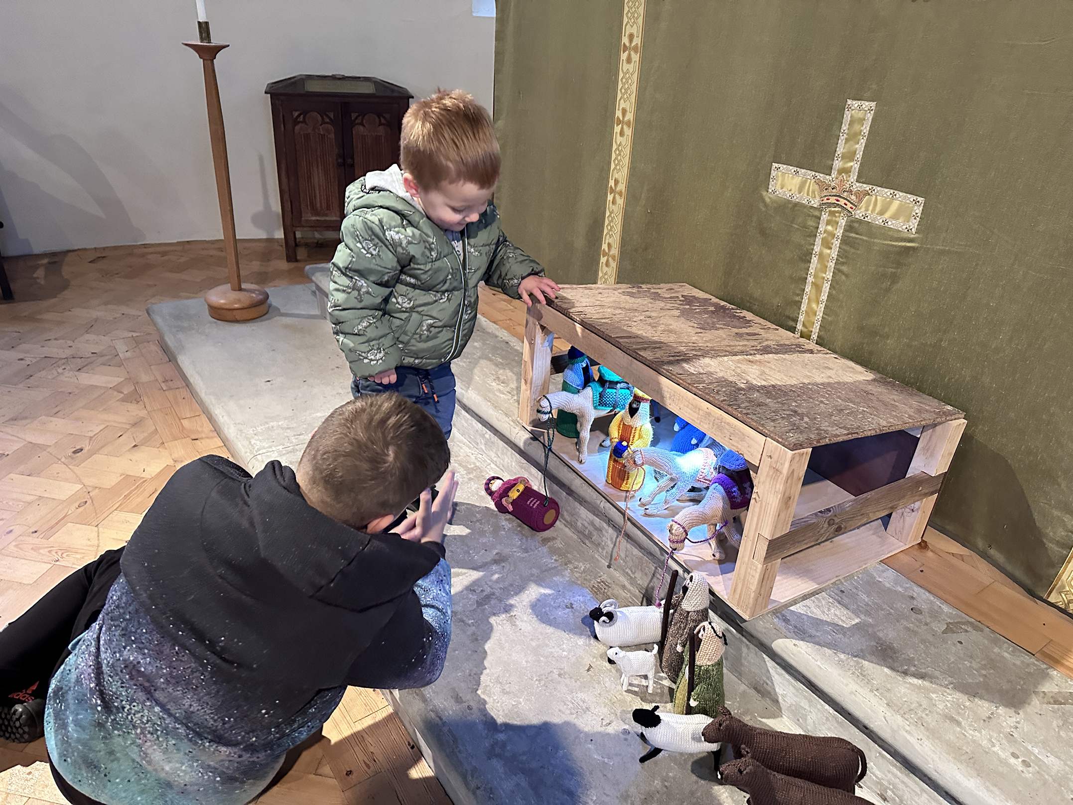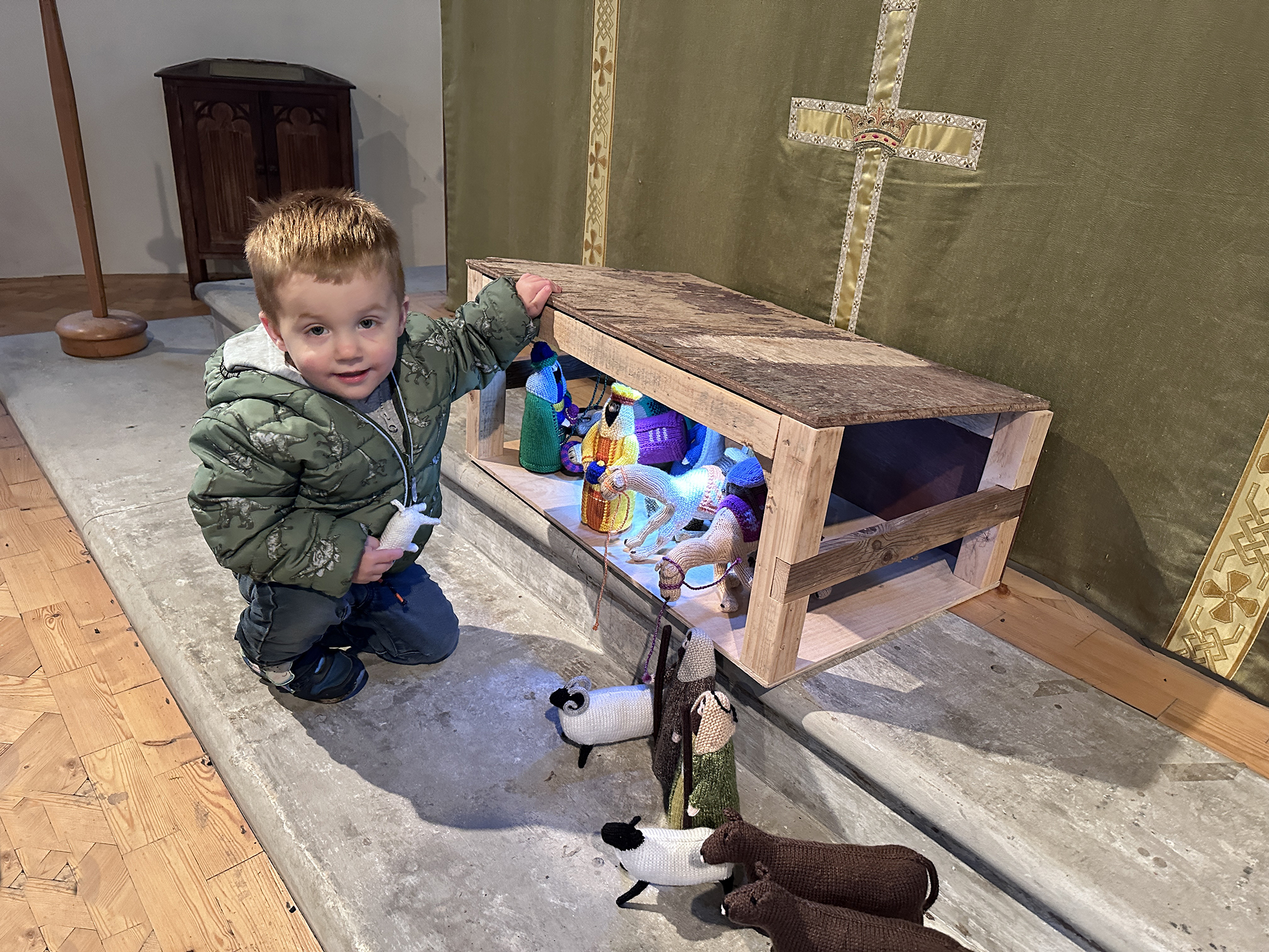The knitted nativity scene captured the attention of Theo, aged two and a half. He spent a great deal of the service re-arranging the animals and crib figures to his liking. I think the camels were surprised.