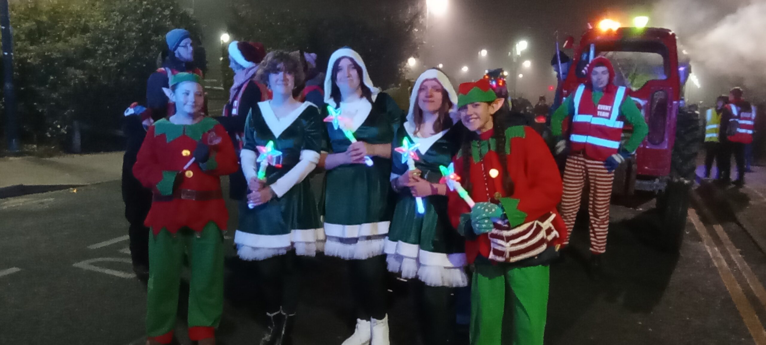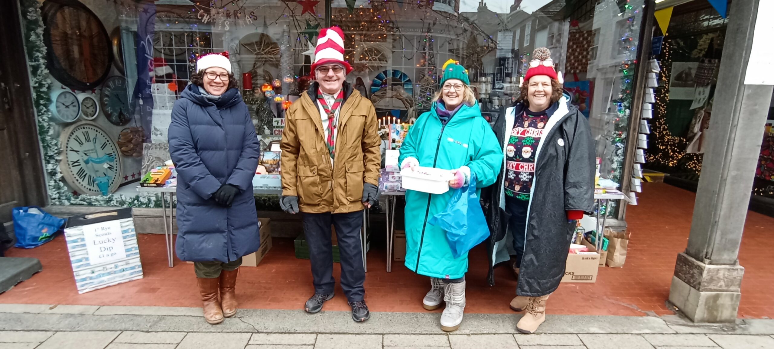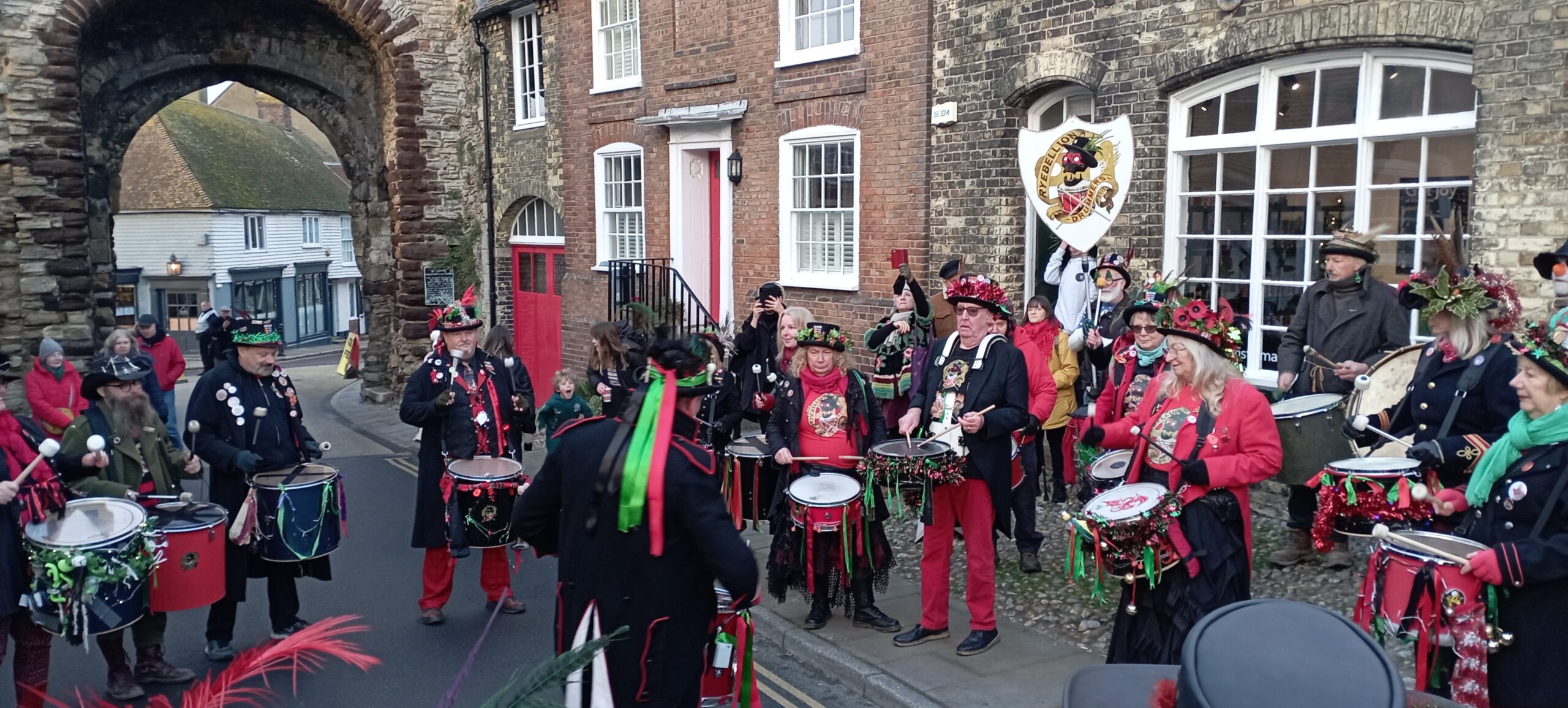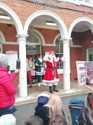 It was cold all day but thankfully it was dry too and this didn’t stop visitors taking advantage of the free parking. No car for Santa, as he made a spectacular entrance at Rye Station before heading to his grotto accompanied by Mother Christmas. meeting and greeting along the way. Later he led the procession from the comfort of a fire engine along with our very own town crier, mayor, Ryebellion drummers and the tractor-drawn fiery dragon, Scorcher.