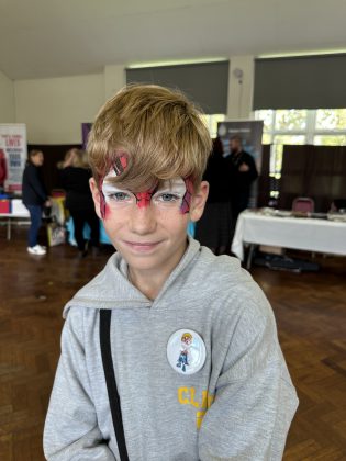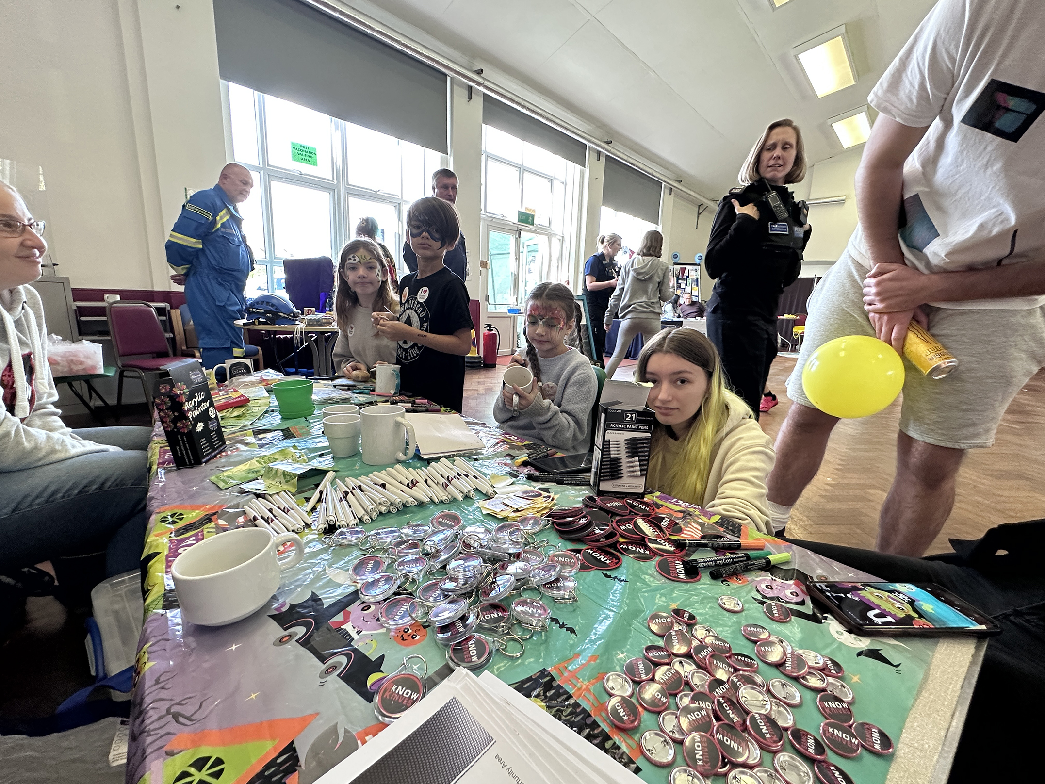 The hall was full of activities for children including mug-painting, creating badges and having their faces painted by Glittery Rainbow Cat. There was a visit from the Fire Service who brought their appliance for the children to explore the equipment and learn what it could do.