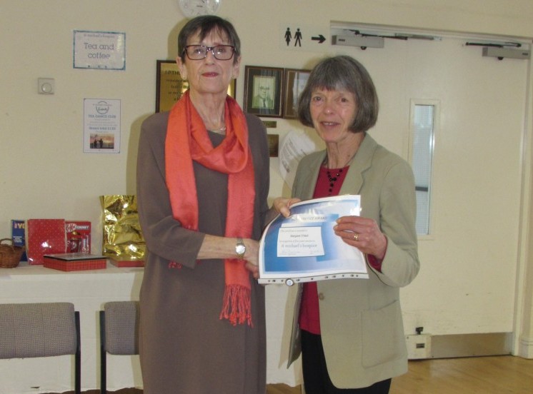 Margaret O’Neill from Rye (above right) was amazed when she received a letter from St Michael’s Hospice in St Leonards on Sea, writes Heidi Foster. It was an invitation to the “Staff and Volunteers Long Service Celebration and Awards Presentation” earlier this month when she was presented with her award for five years voluntary service at the hospice and congratulated.