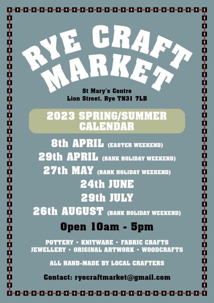 A new monthly Craft Market is opening in Rye at St Mary’s Centre, Lion Street (next to Rye Kino) starting on Easter Saturday, 8th April from 10.00 to 5.00.