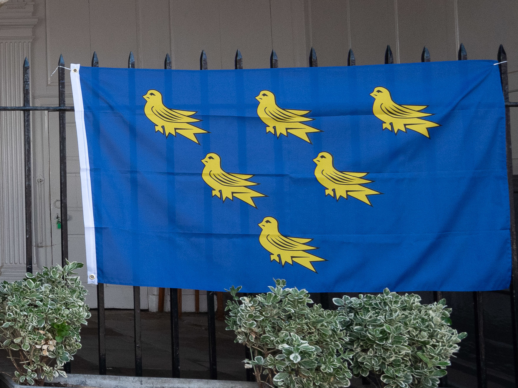 The Sussex flag comprises six gold martlets on a blue field, and is the traditional emblem of the whole of Sussex before the county was divided for administrative purposes between East and West Sussex. The martlet is a heraldic device of a stylised bird with some similarity to a swift.