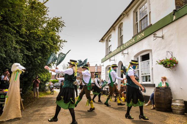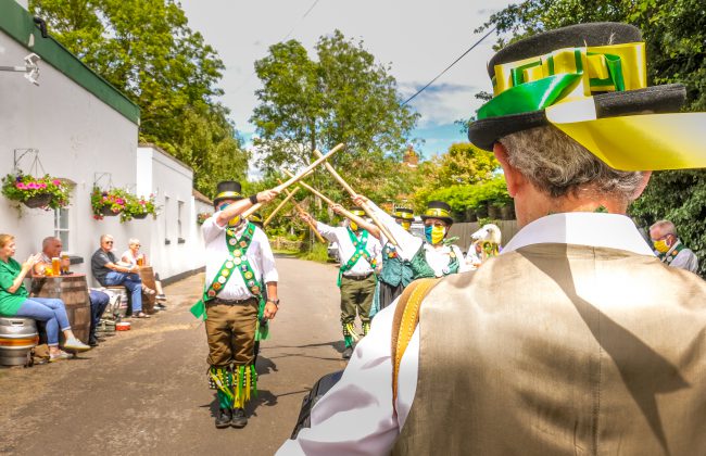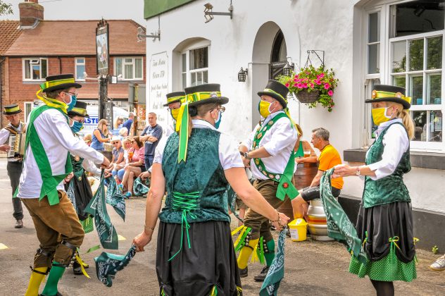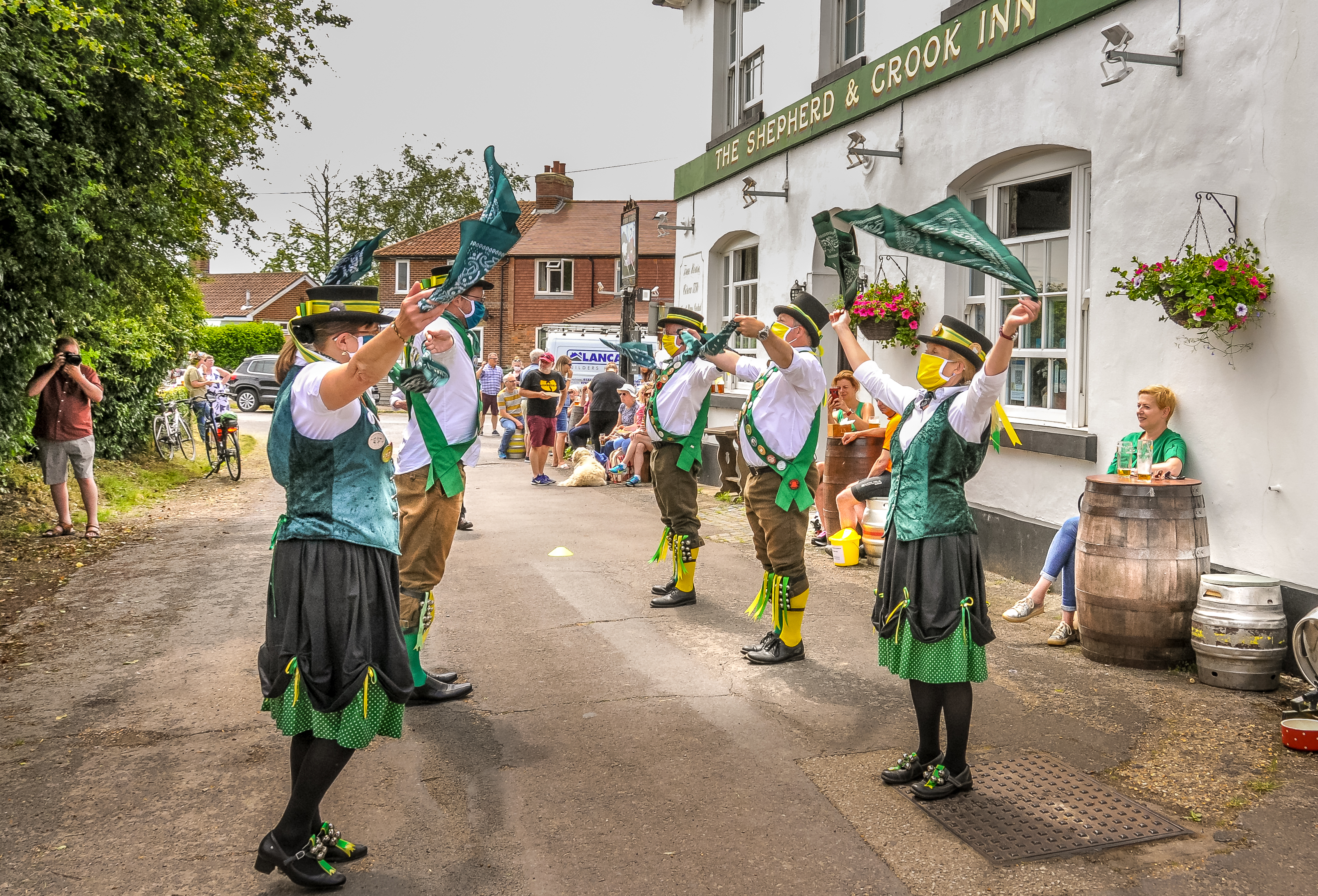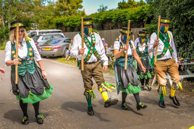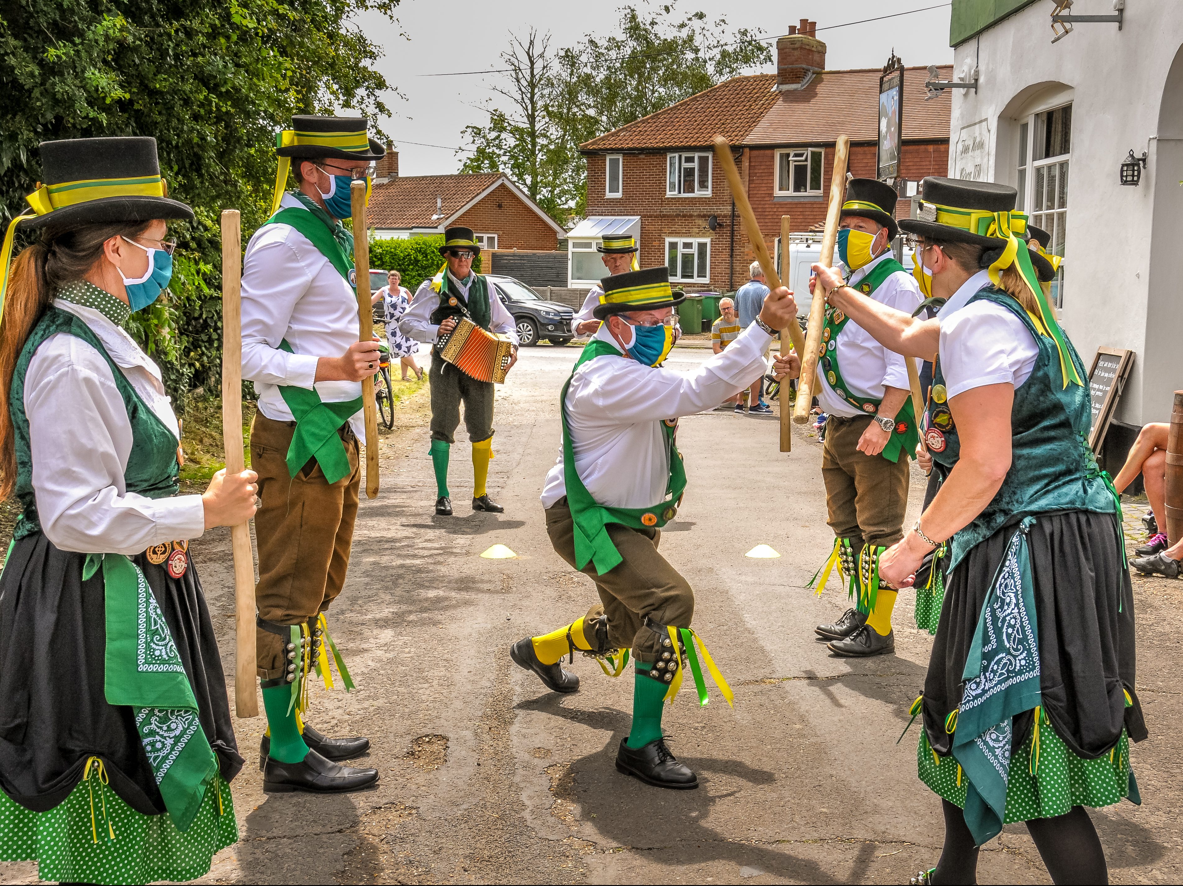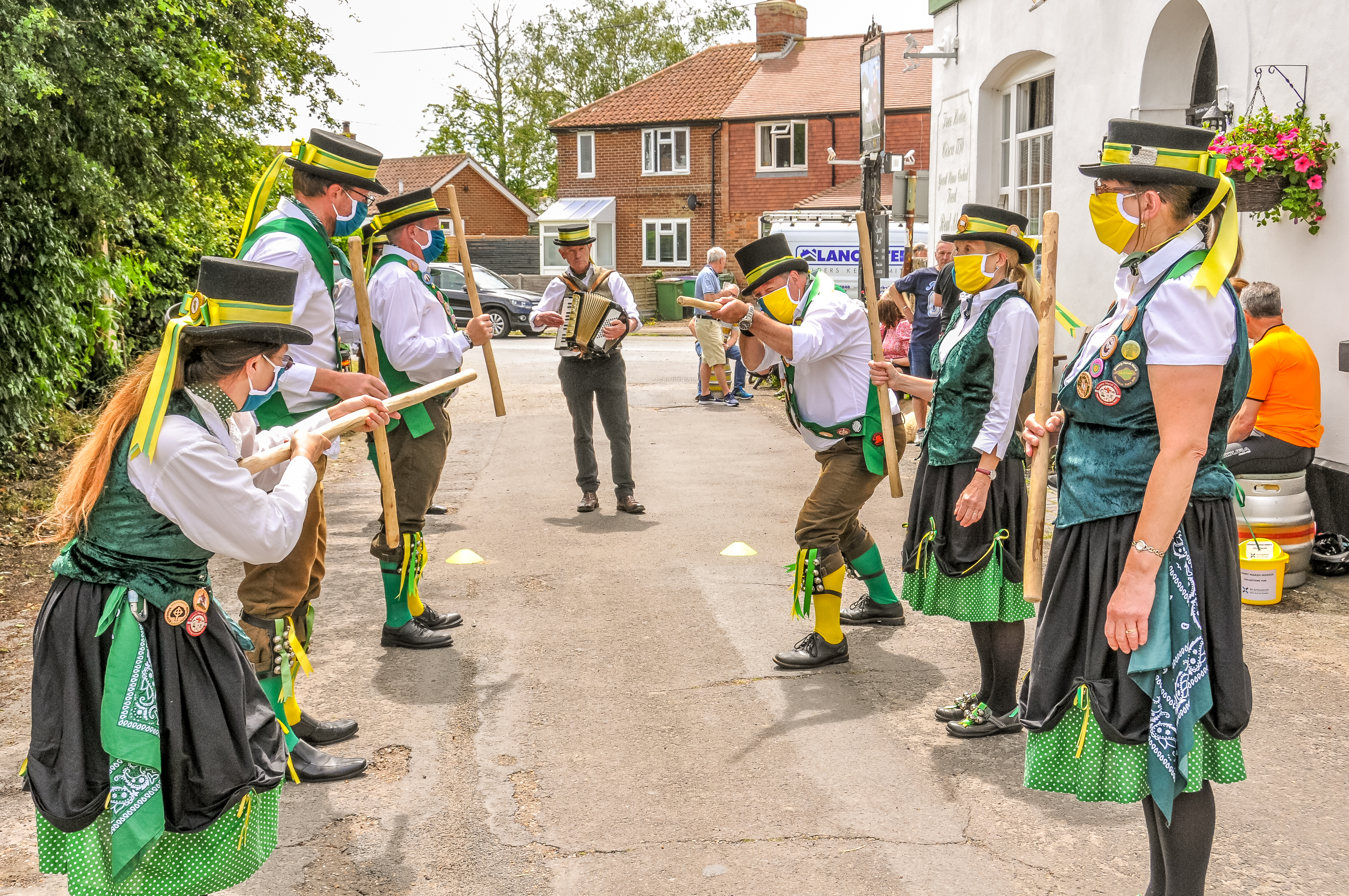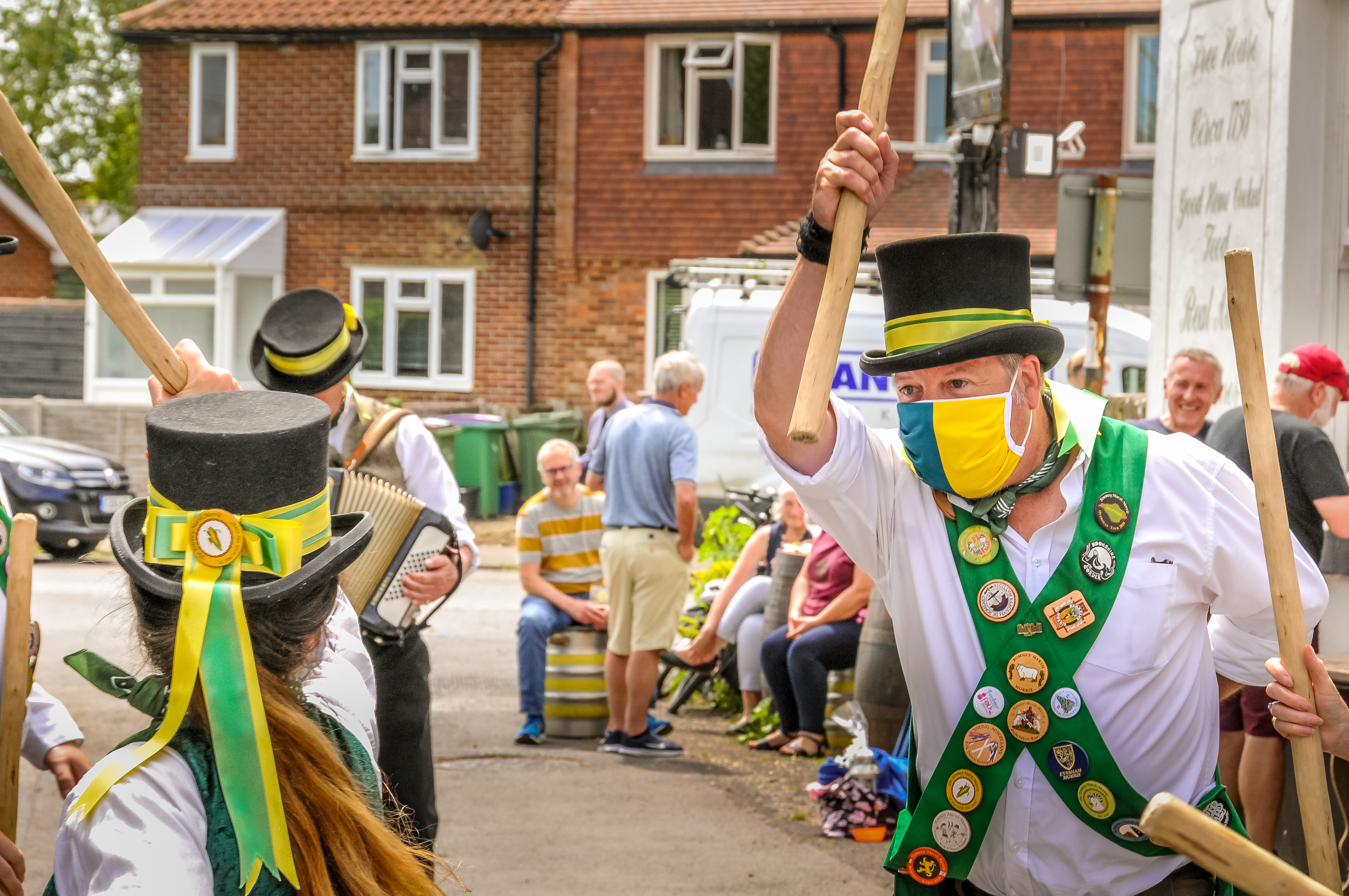 The Romney Marsh Morris dancers made their first public appearance in 629 days as part of a charity fun event at the Shepherd and Crook Inn, Burmarsh, last weekend.