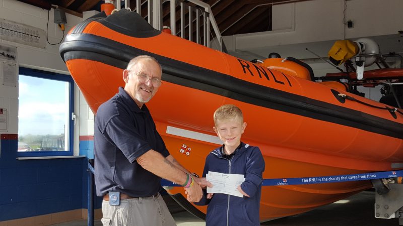Oliver, from Faversham, was given a guided tour of the station before presenting the cheque whilst alongside Hello Herbie II, the new inshore Atlantic 85 lifeboat.
