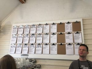 Knoops: As Londoners, we’re used to a new coffee shop popping up every day, competing with thousands of others, to see who can serve the perfectly brewed cup in the most original or inventive way, so finding a shop in Rye serving several varieties of hot chocolate, was a very welcome surprise. Knoops’ simplicity and lack of frills is an indication of the quality of their product: there’s no overcompensation here. Your hot chocolate options are presented on modest pieces of paper pinned to clipboards, offering a selection that starts from 28% cocoa, all the way to 100% for those who like it bitter. Knoops’ owner and namesake is extremely passionate about the hot chocolate he serves and is contentedly patient with his customers while they peruse the percentages of cocoa on offer. Listening to him speak so enthusiastically about his craft was one of the reasons we went to Knoops twice in one day and returned there for one last taste before we got on our train back to London. We’d recommend the 34% and the 39%.