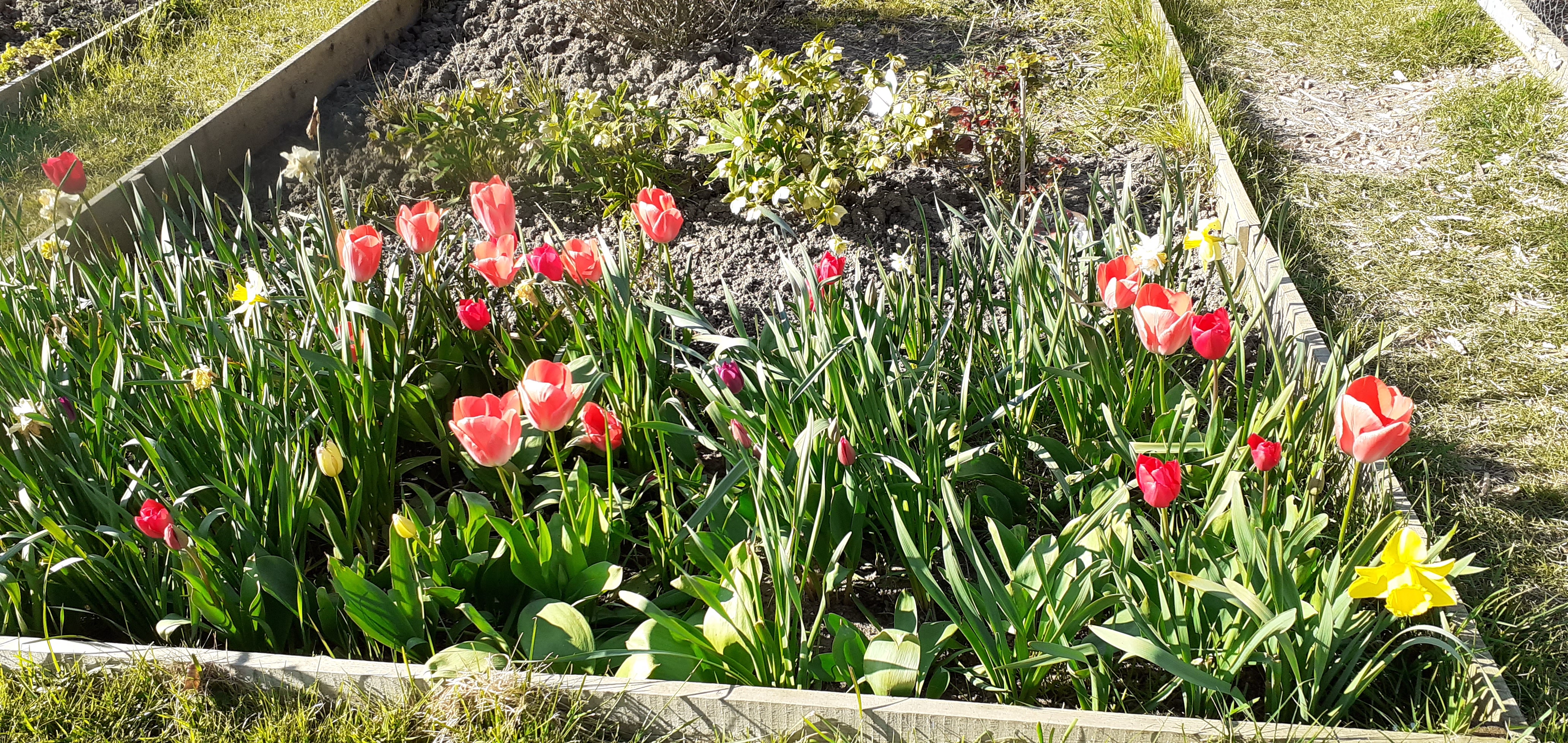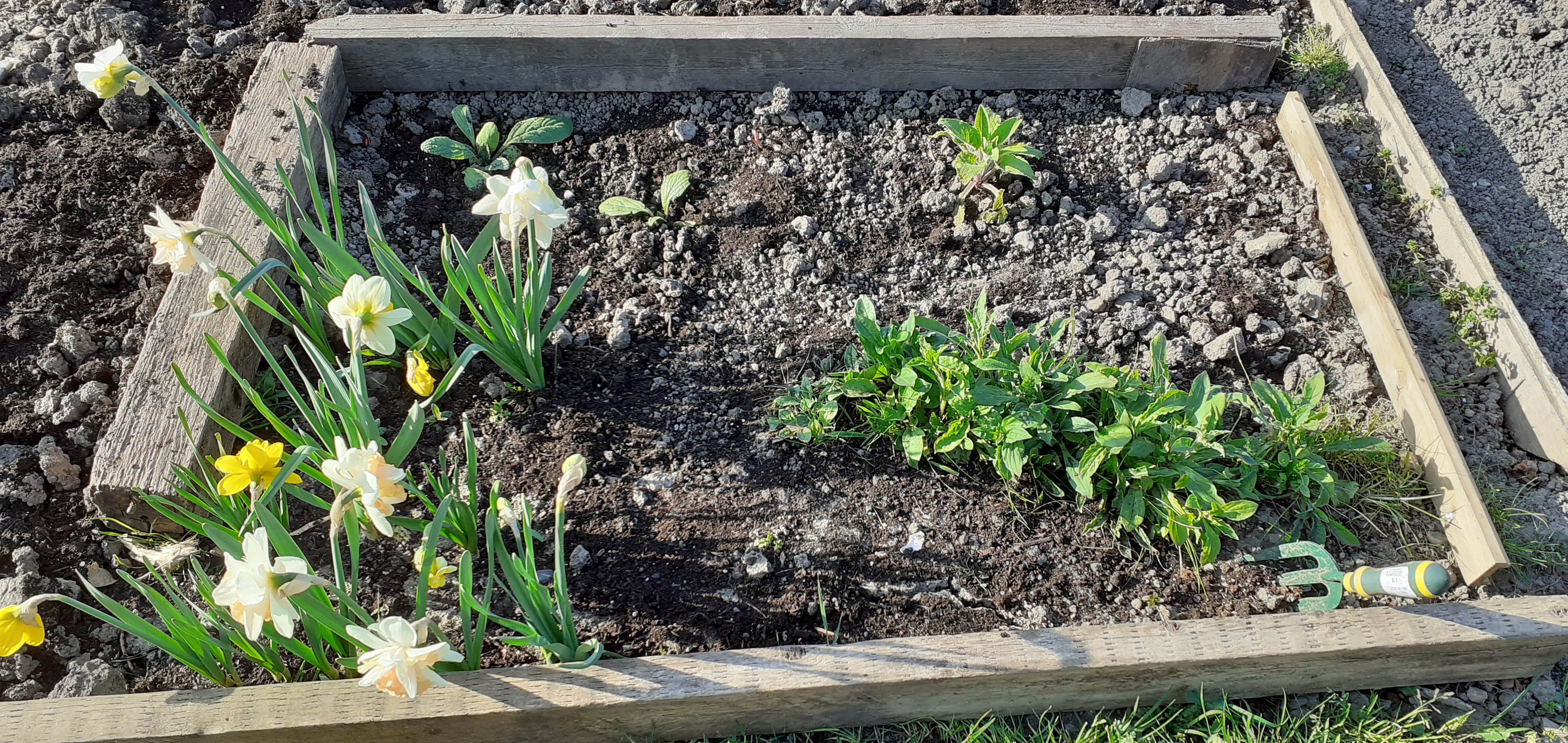 Being a novice at this, my first attempt for my wild flower bed to attract butterflies and bees didn’t quite happen. However, a small bed was more manageable and my first flowers appeared for Easter.