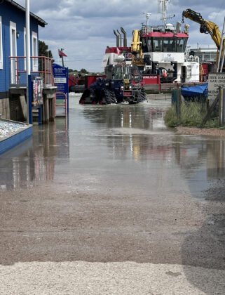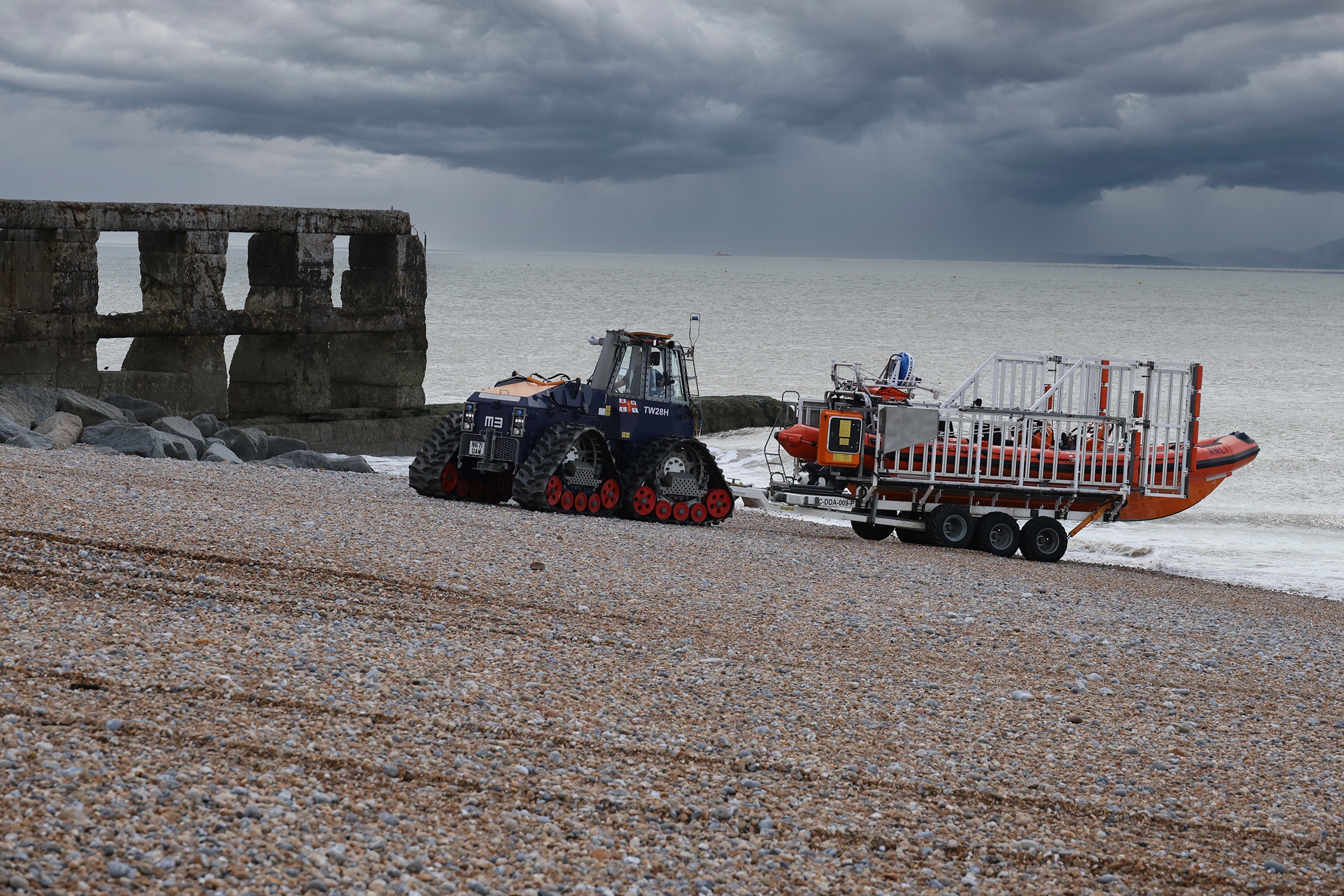 Senior fleet staff engineer Davey Wallace and fleet staff mechanic Andy Williams were on hand to ensure the tractor was put through its paces on the shingle at the harbour mouth. Launch and recovery engineer Tom Ward oversaw the operation and observed how the Mk3 coped. The shingle at the beach is challenging because of its loose texture which leads to the formation of steep banks.